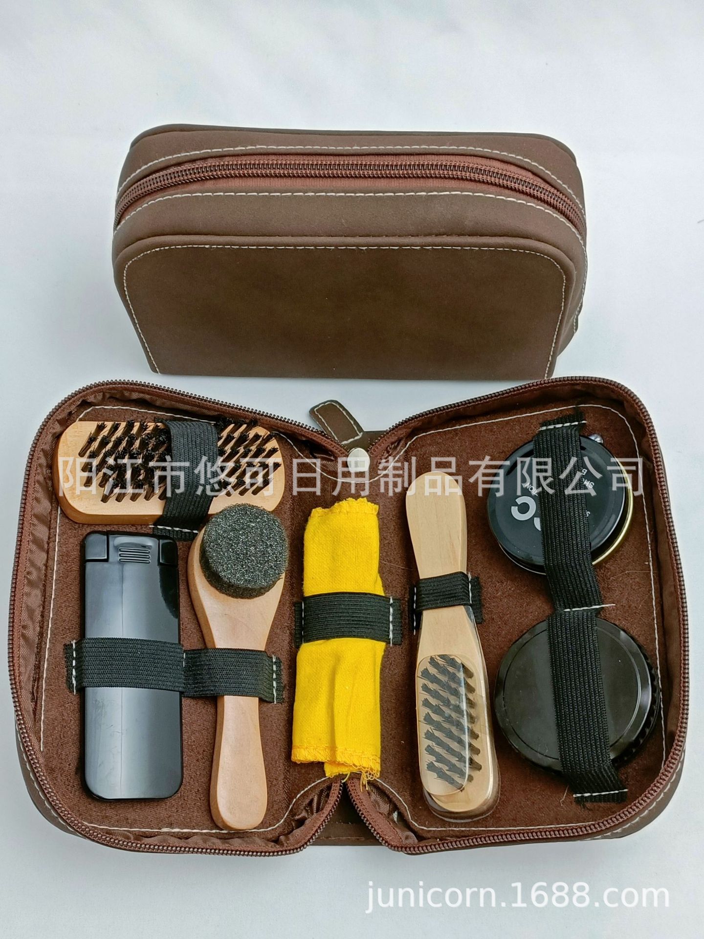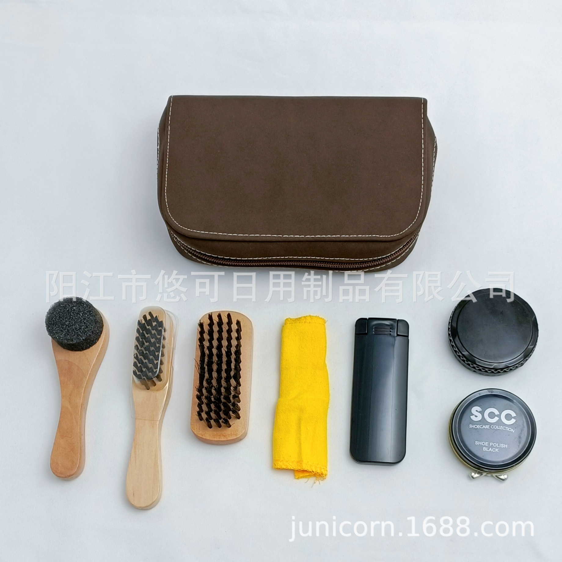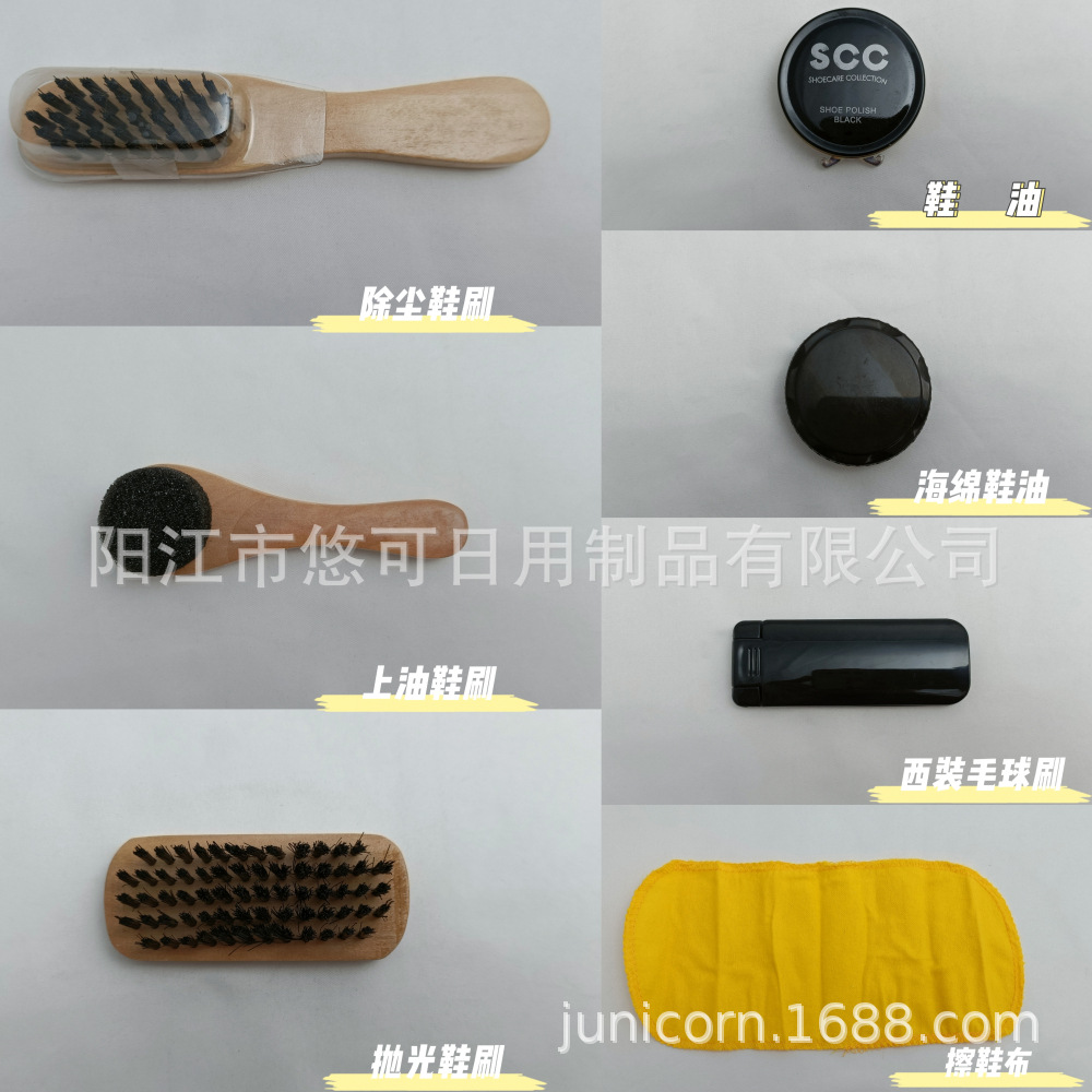 鞋油套装厂家批发皮鞋护理用具 木柄鞋刷海绵鞋油护理擦鞋7件套装