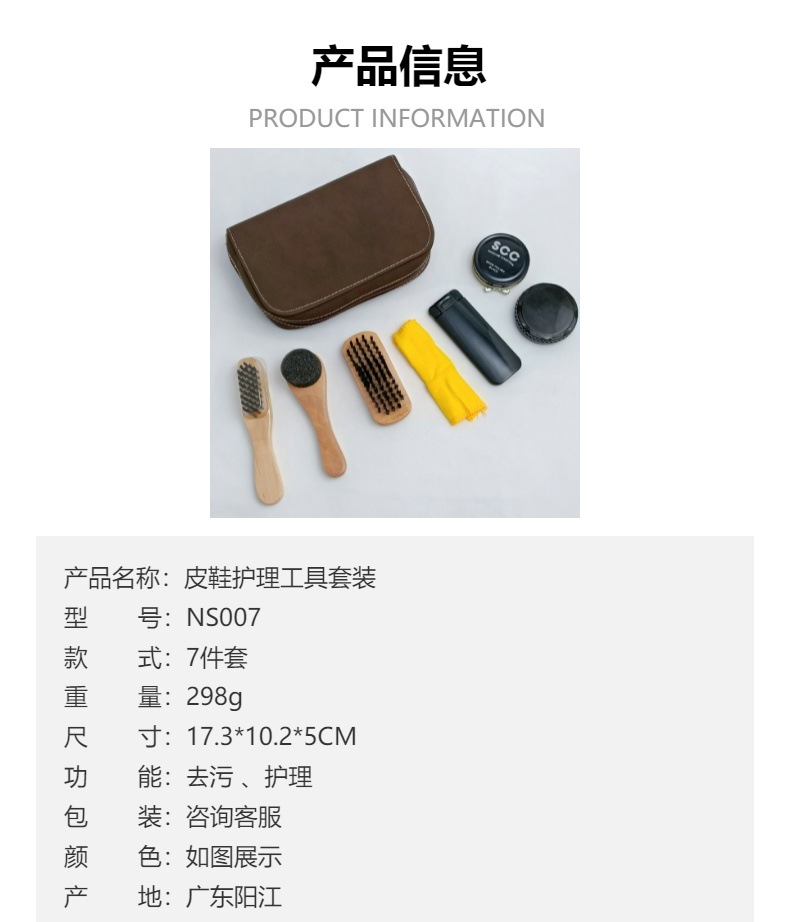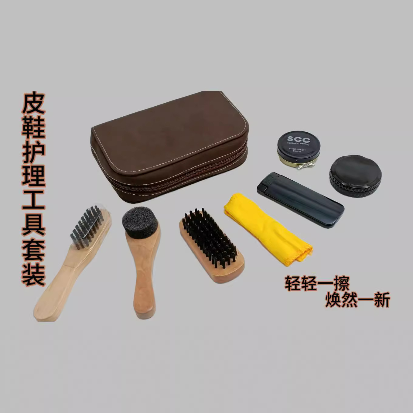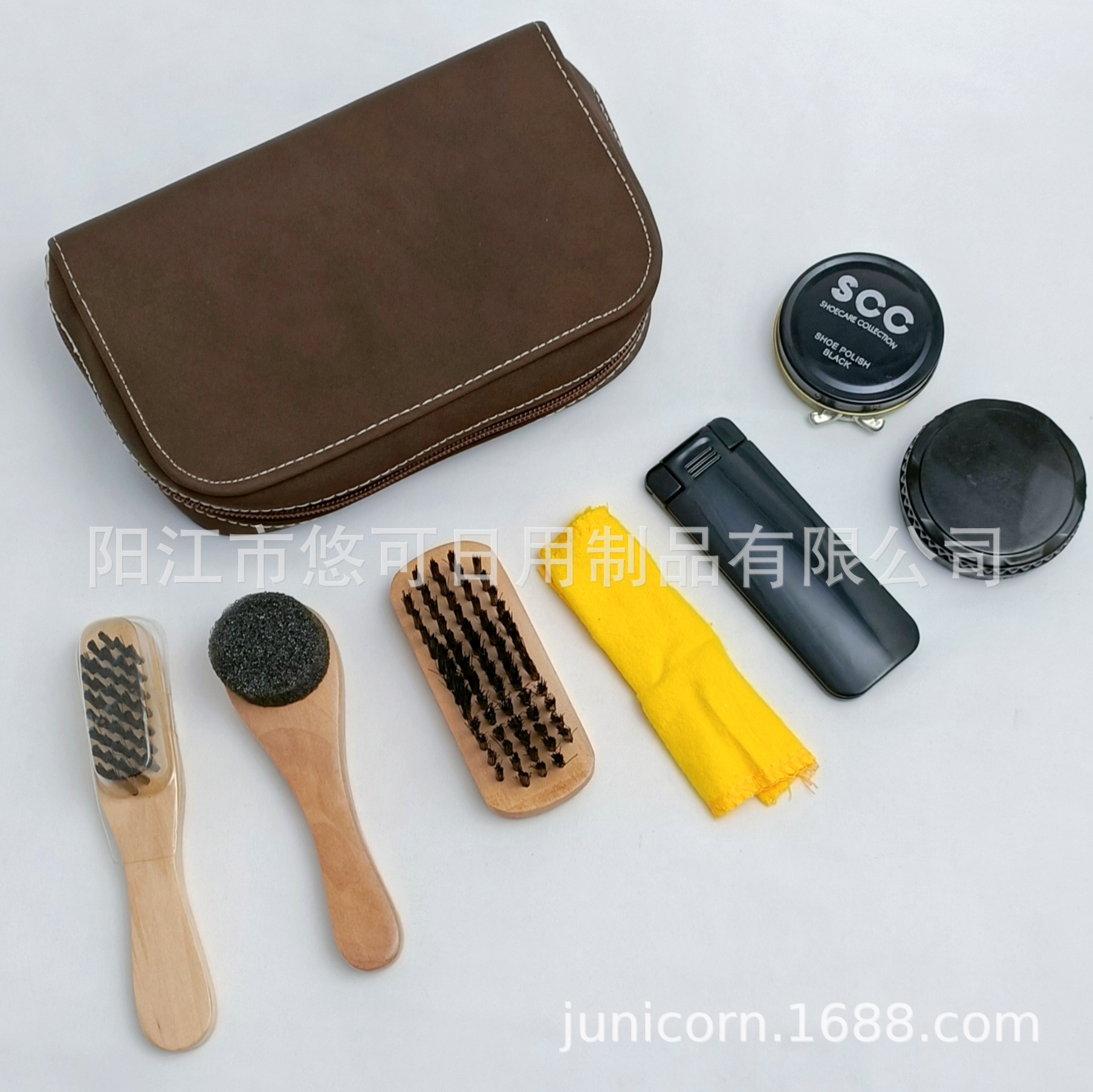 鞋油套装厂家批发皮鞋护理用具 木柄鞋刷海绵鞋油护理擦鞋7件套装
