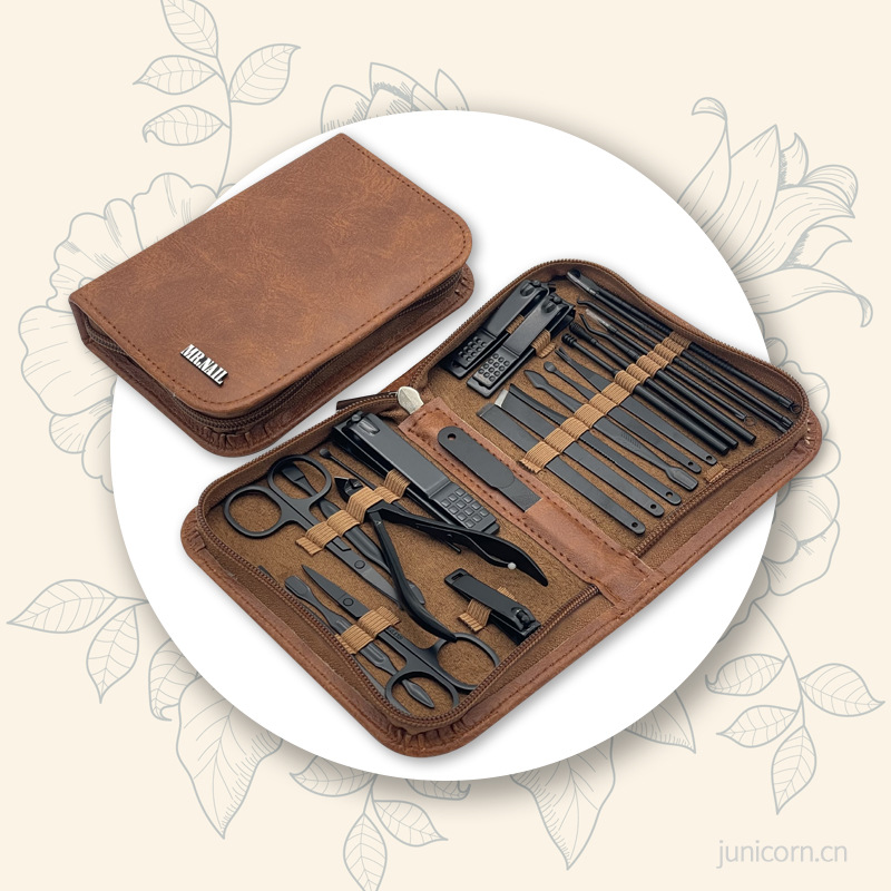 直供黑色不锈钢26件套死皮剪指甲刀修甲套装指甲锉粉刺针工具全套