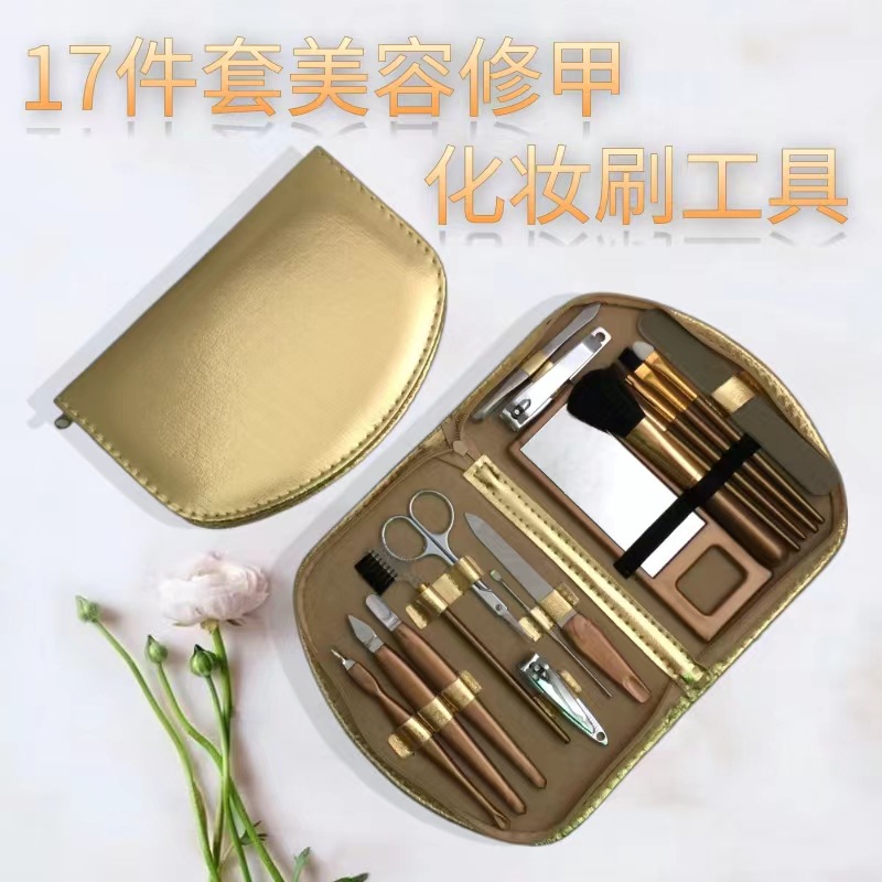 美妆工具17件指甲刀全套指甲剪18件套化妆刷加印LOGO美甲工具包