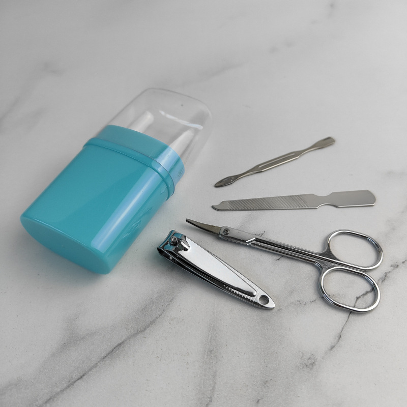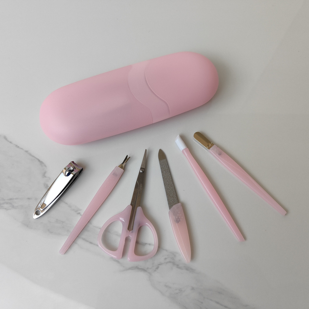 眼镜筒粉色塑料盒PP手柄6件套指甲钳指甲刀修甲套装工具包