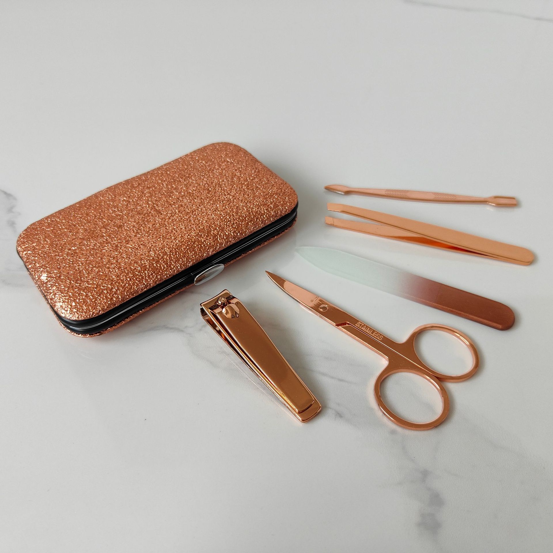 玫瑰金不锈钢美甲套装5件套可定制指甲钳指甲剪美容修甲工具套装