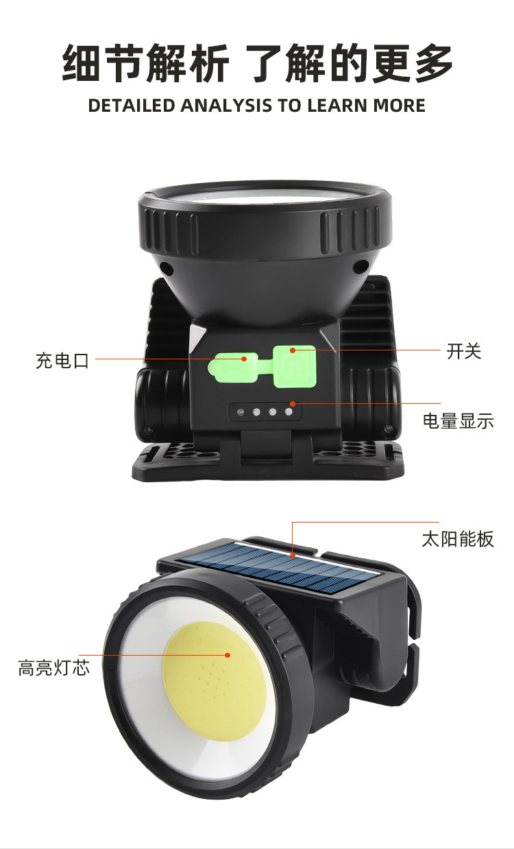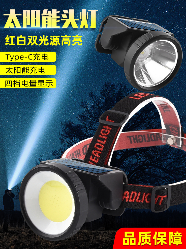 헤드 램프 긴 내구성 강한 빛 필드 빛 방수 충전 COB 태양 광 LED 헤드 장착 손전등스토어 가기