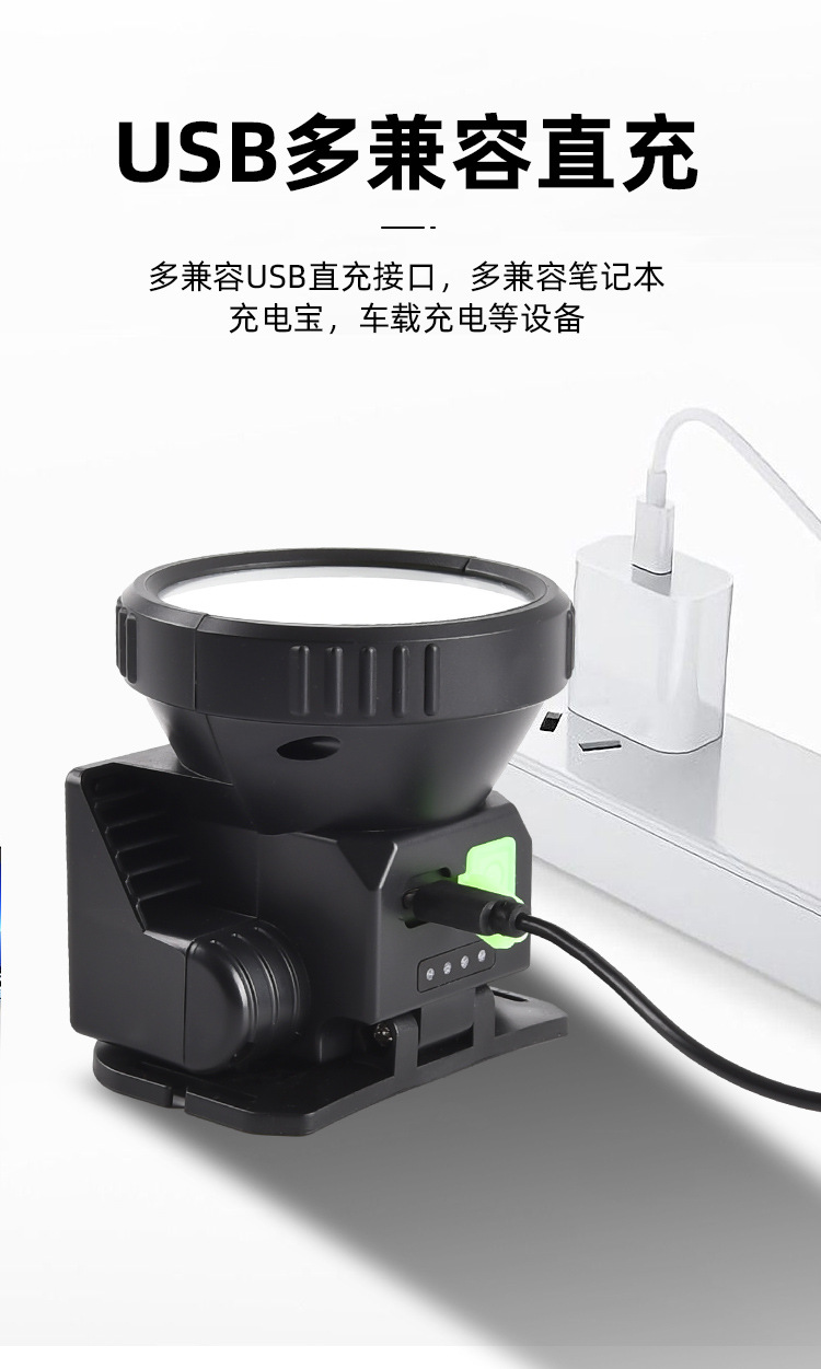 헤드 램프 긴 내구성 강한 빛 필드 빛 방수 충전 COB 태양 광 LED 헤드 장착 손전등