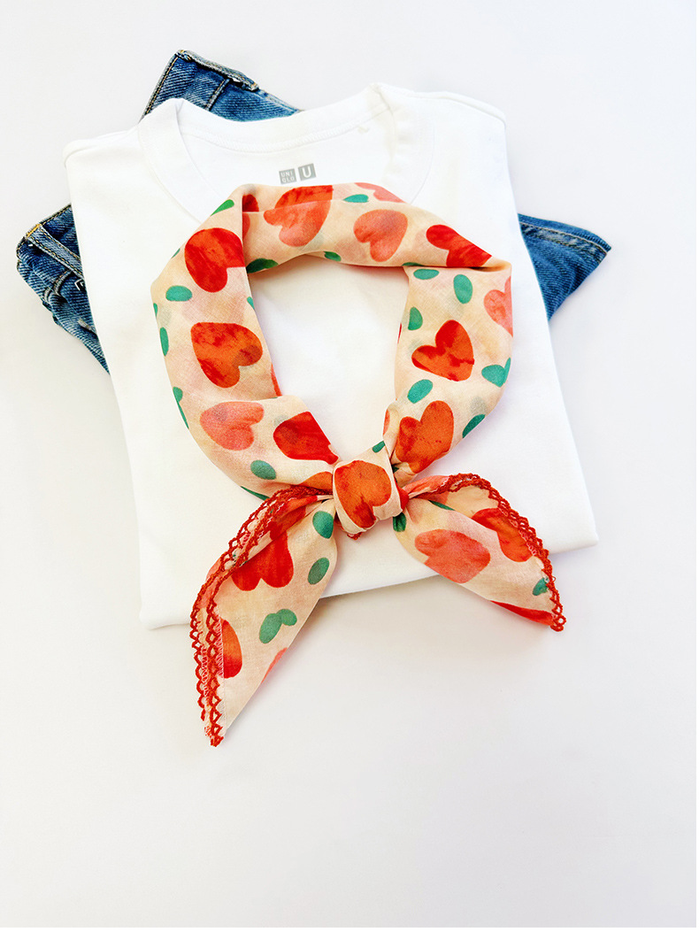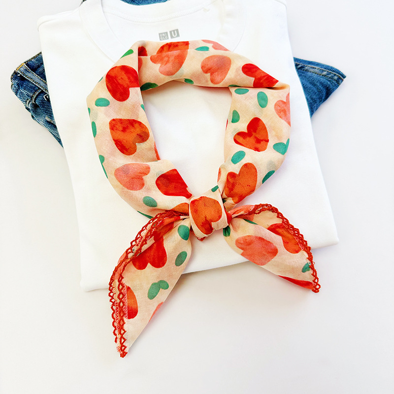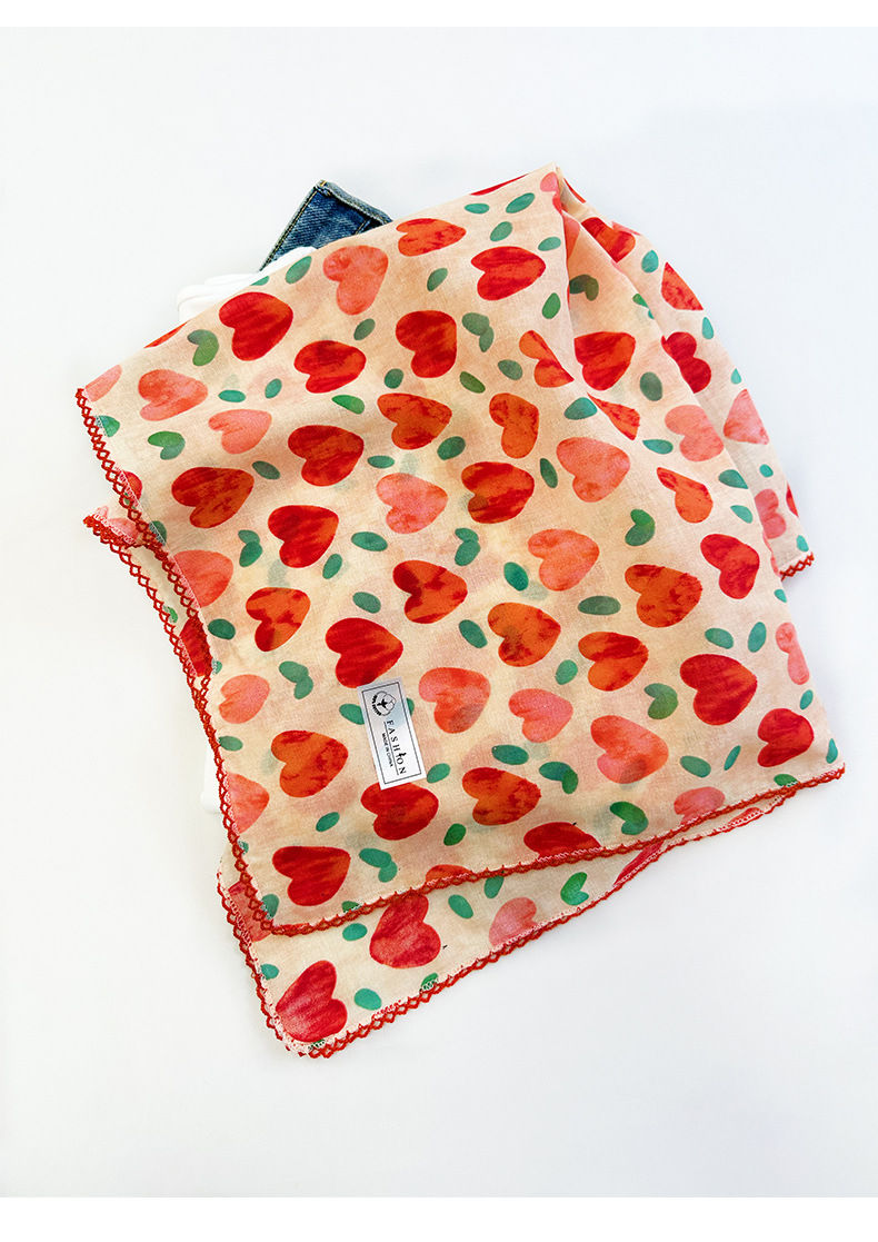 오렌지 파우더 사랑 레이스 코튼 스퀘어 타월