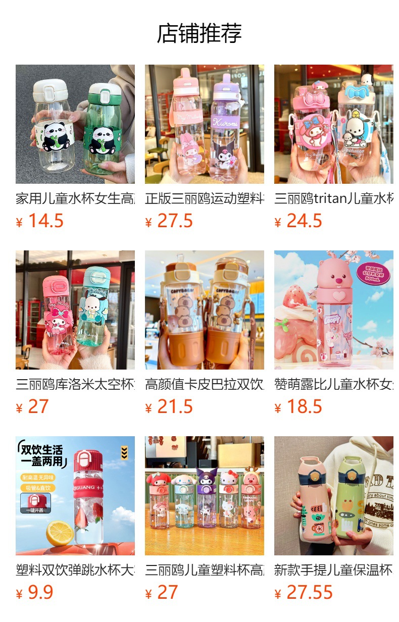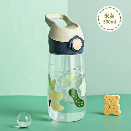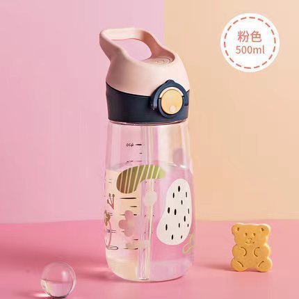 만화 어린이 워터 컵 초등학생 낙하 방지 트리탄 재료 누출 방지 밀봉 플라스틱 워터 컵 휴대용 컵 흡입 튜브스토어 가기