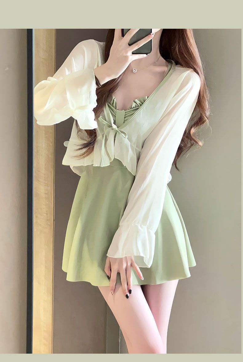 수영복 여성 스커트 스타일 보수적으로 슬림 커버 소녀 선스크린 블라우스 한국식 인즈 패셔너블 바캉스 수영복