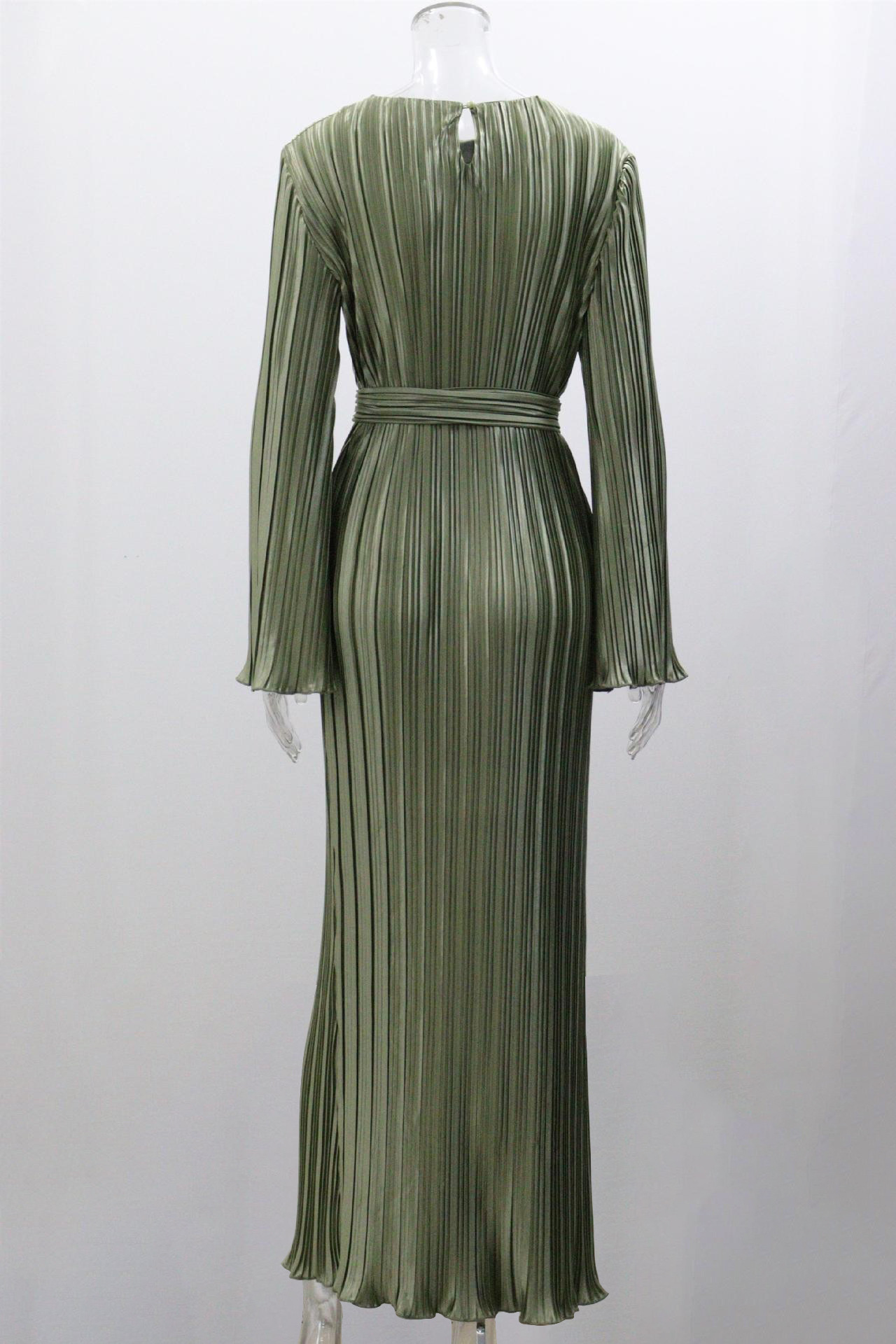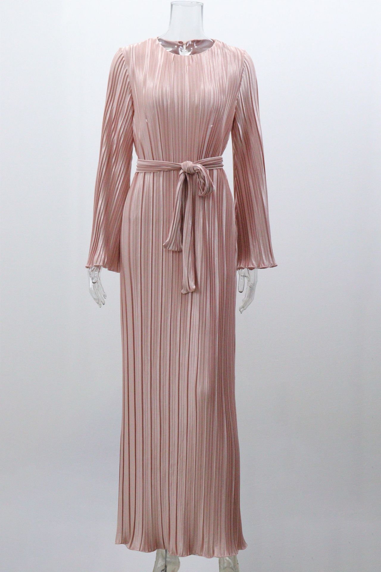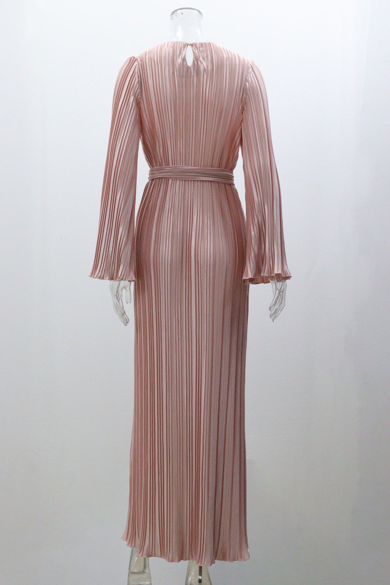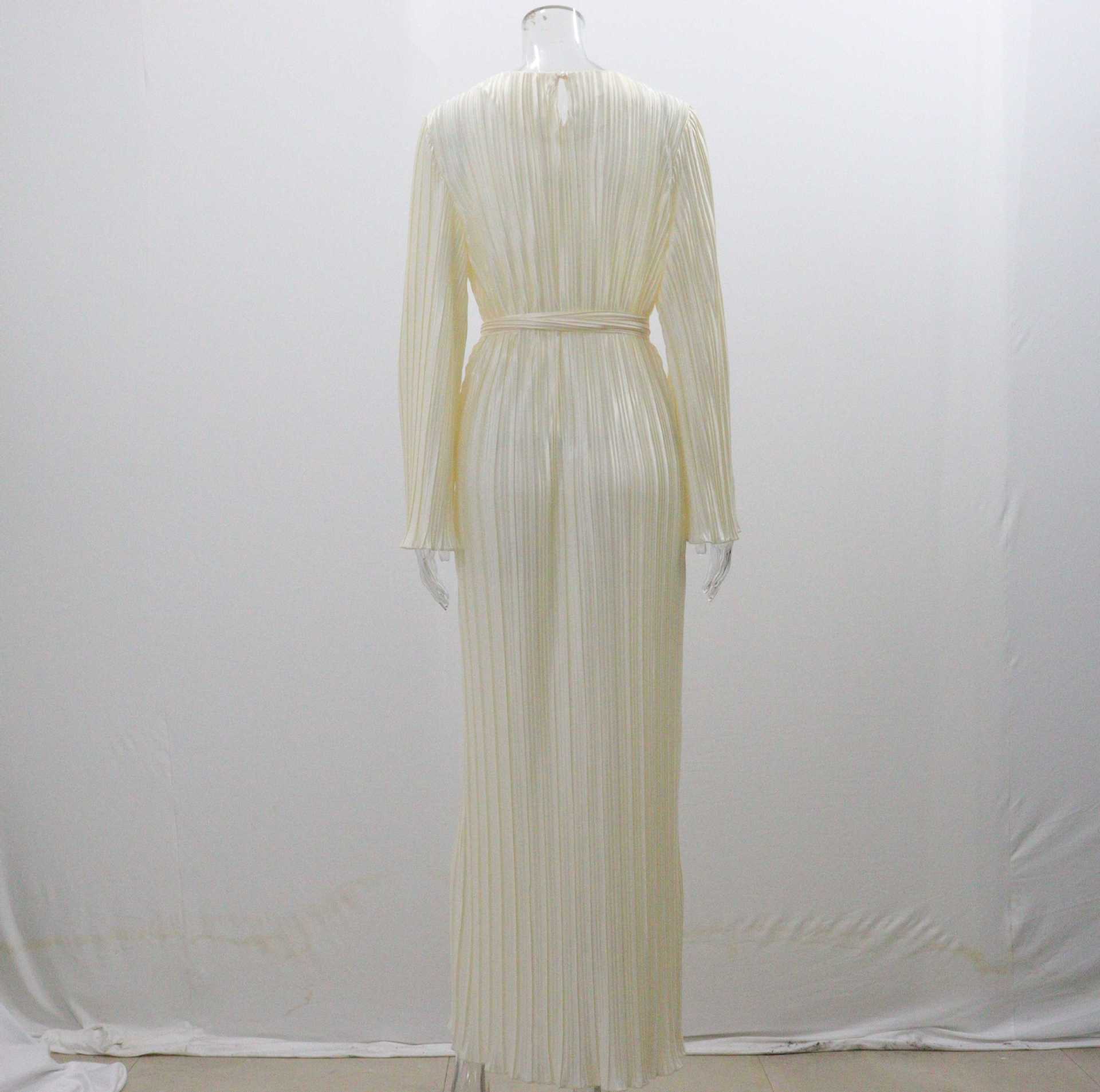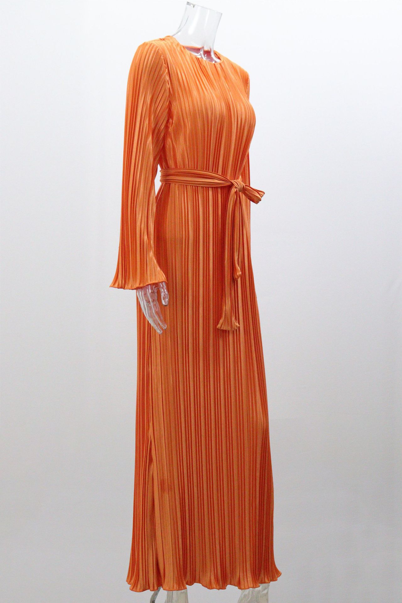 유럽과 미국 스타일 여성의 2024 봄과 가을 새로운 패션 원피스 여성의 캐주얼 단색 둥근 목 뿔 소매 주름 원피스