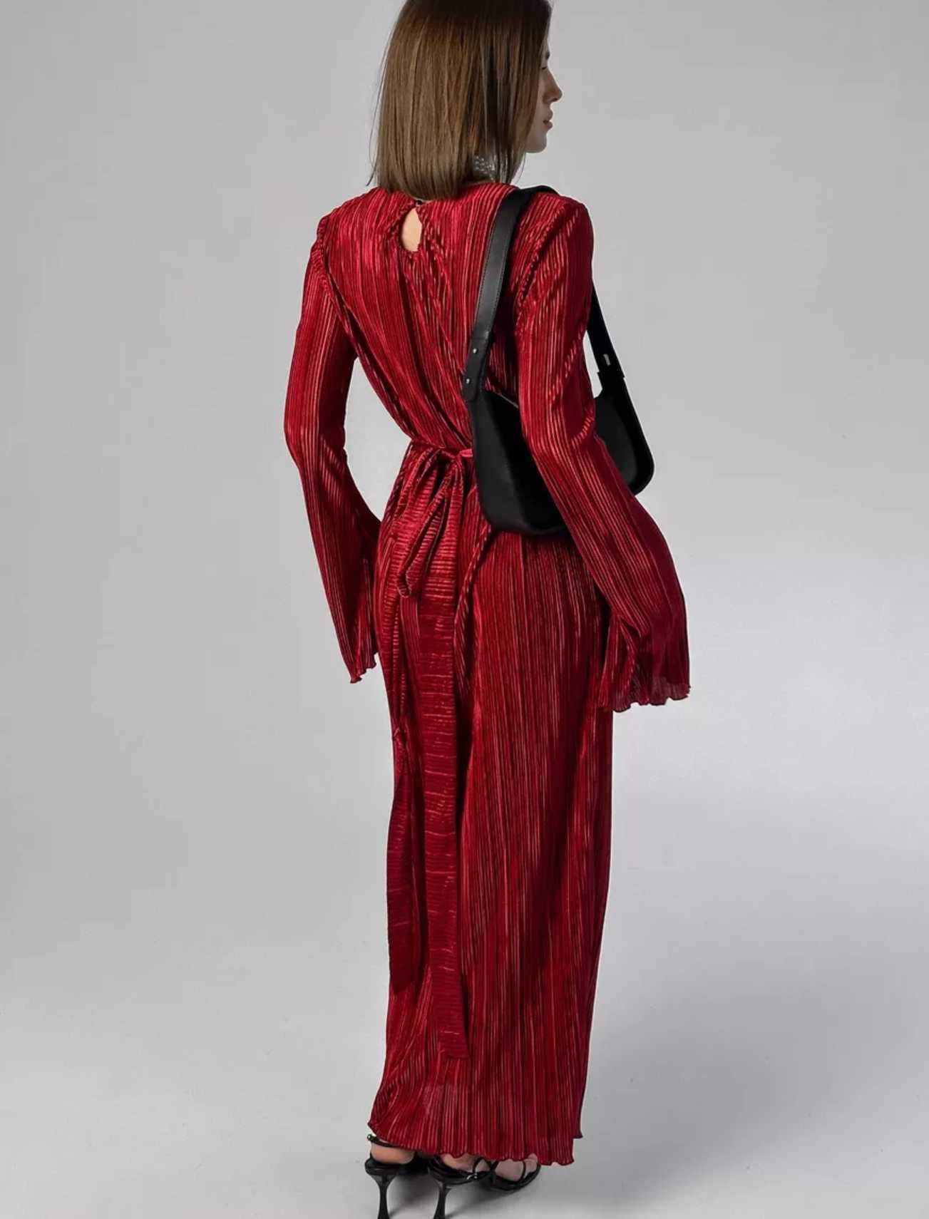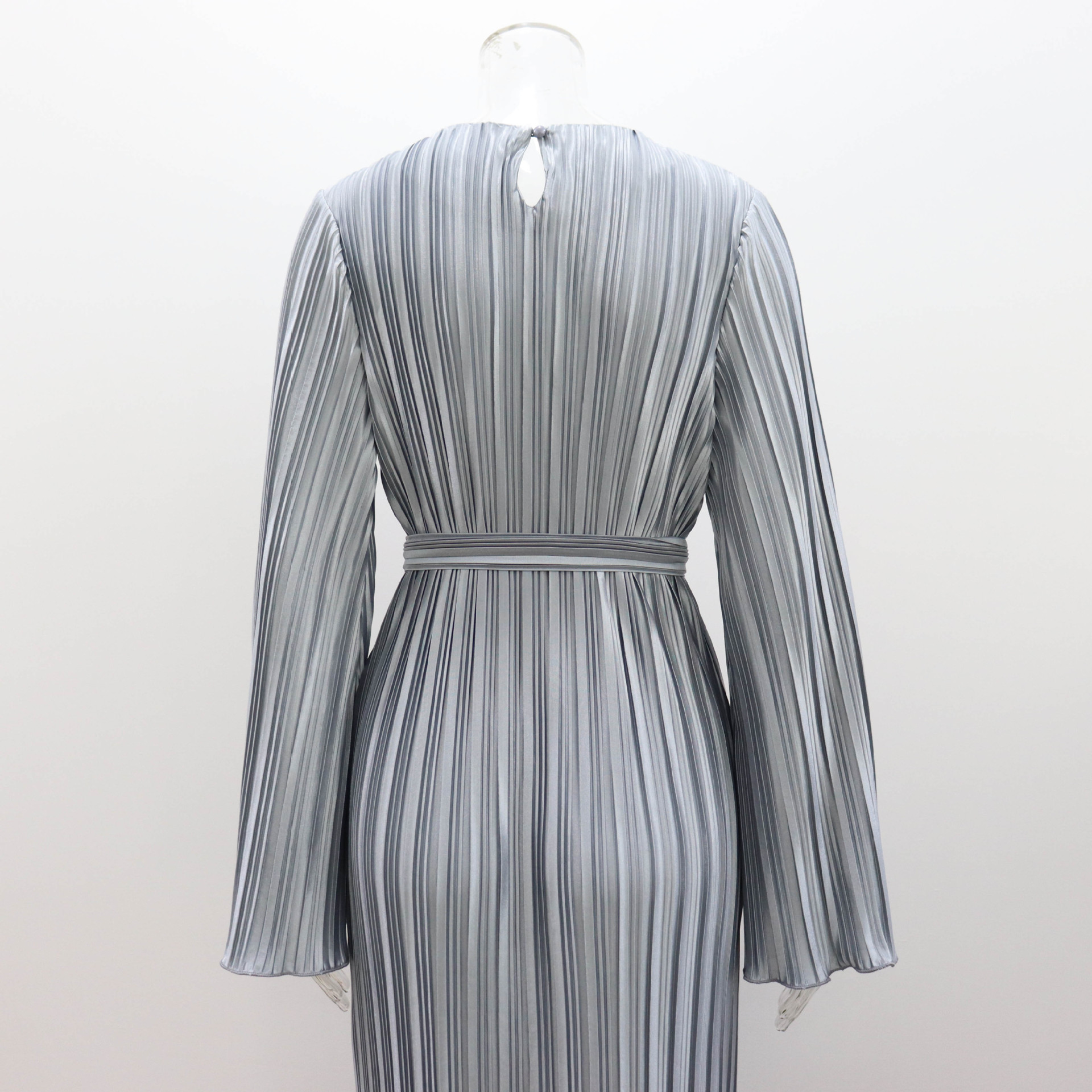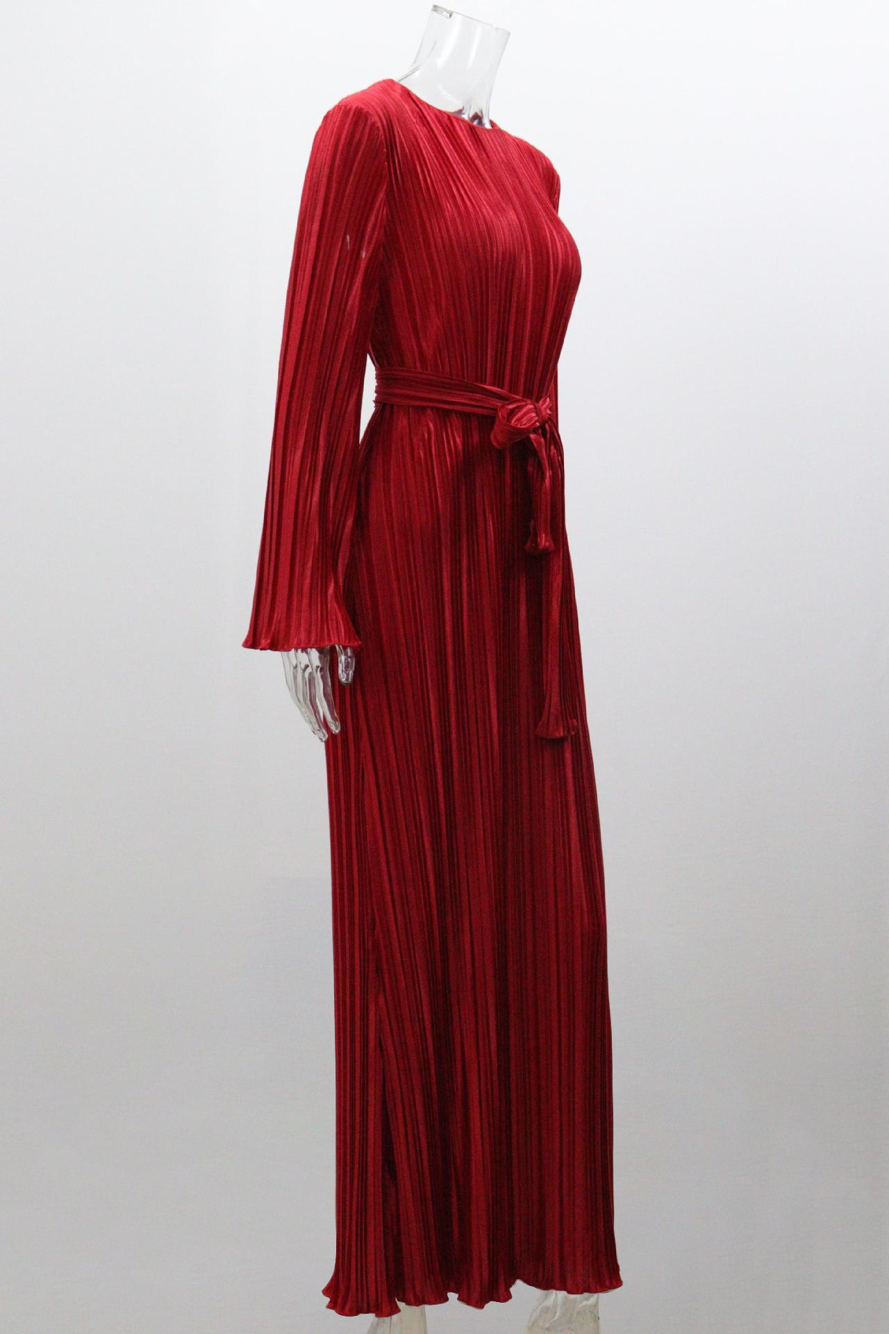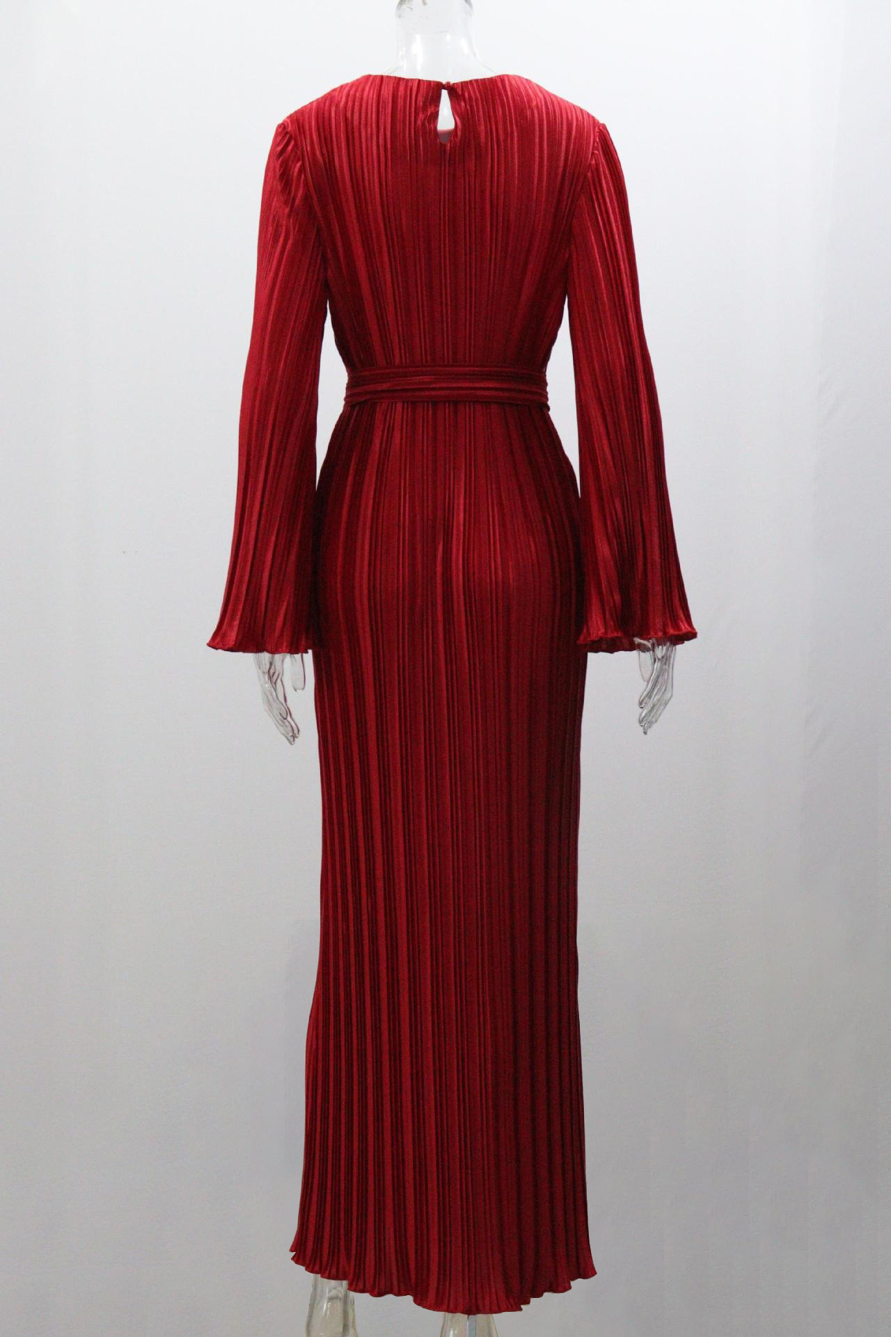 유럽과 미국 스타일 여성의 2024 봄과 가을 새로운 패션 원피스 여성의 캐주얼 단색 둥근 목 뿔 소매 주름 원피스