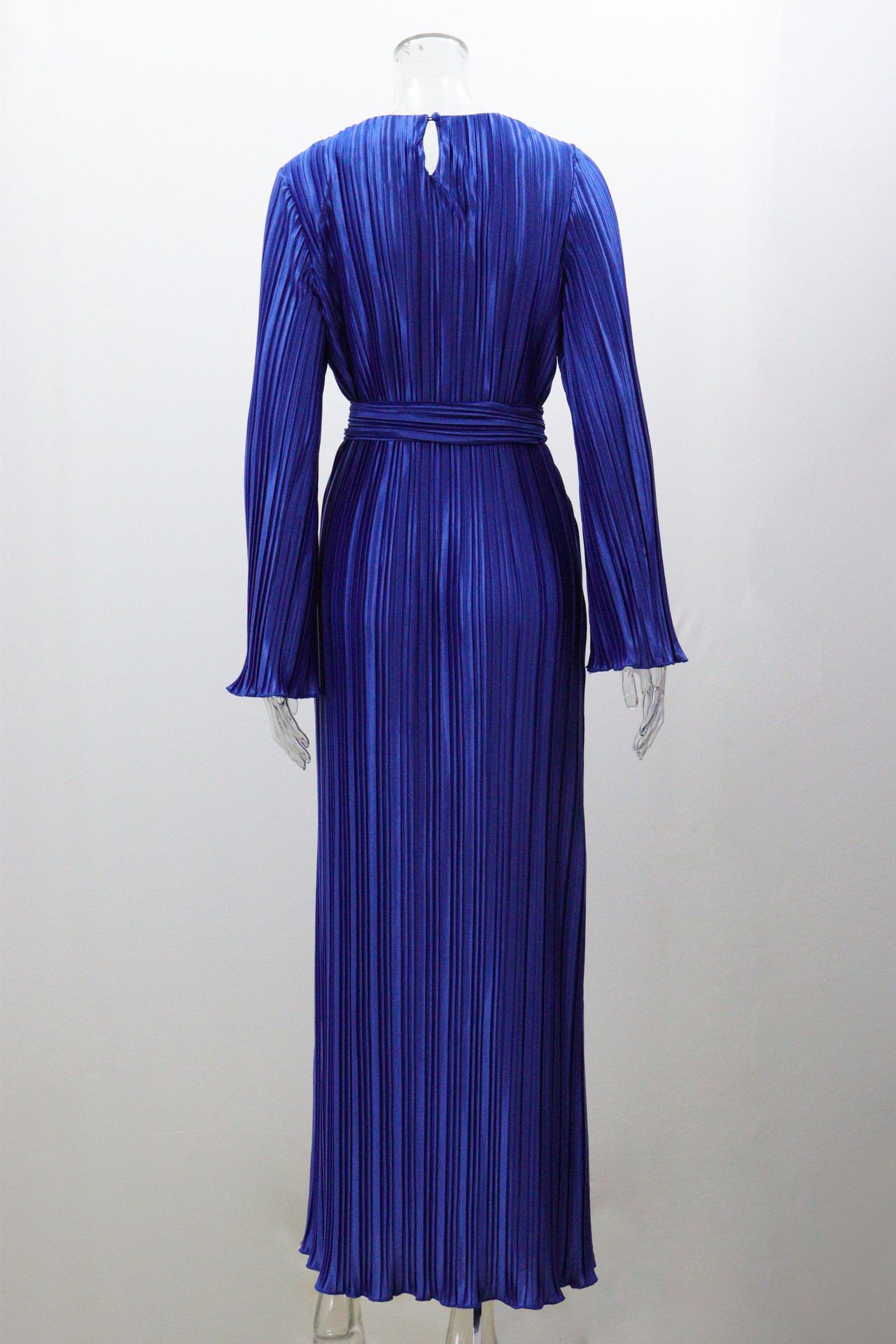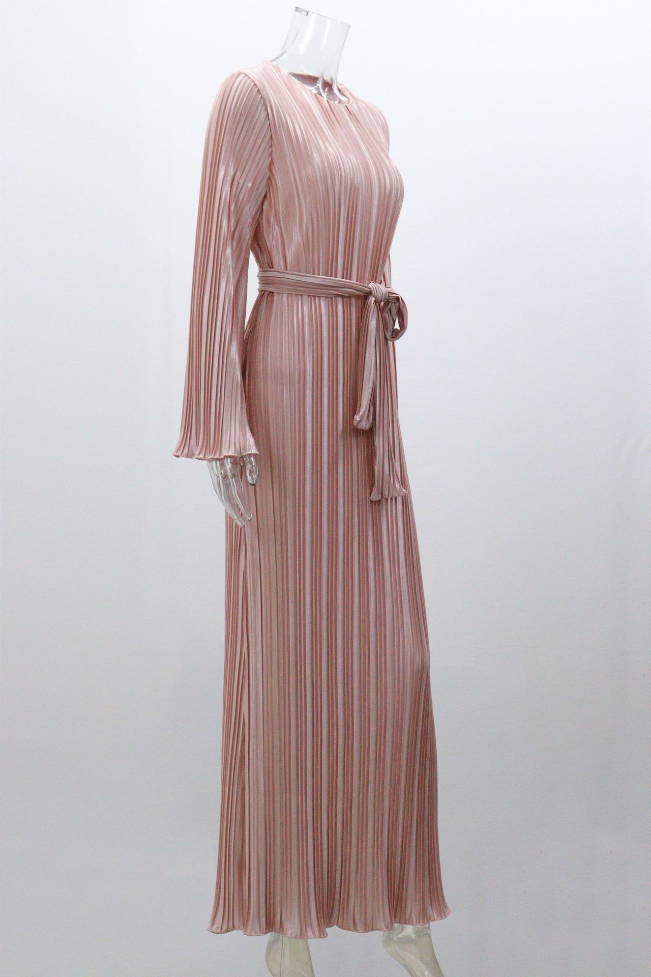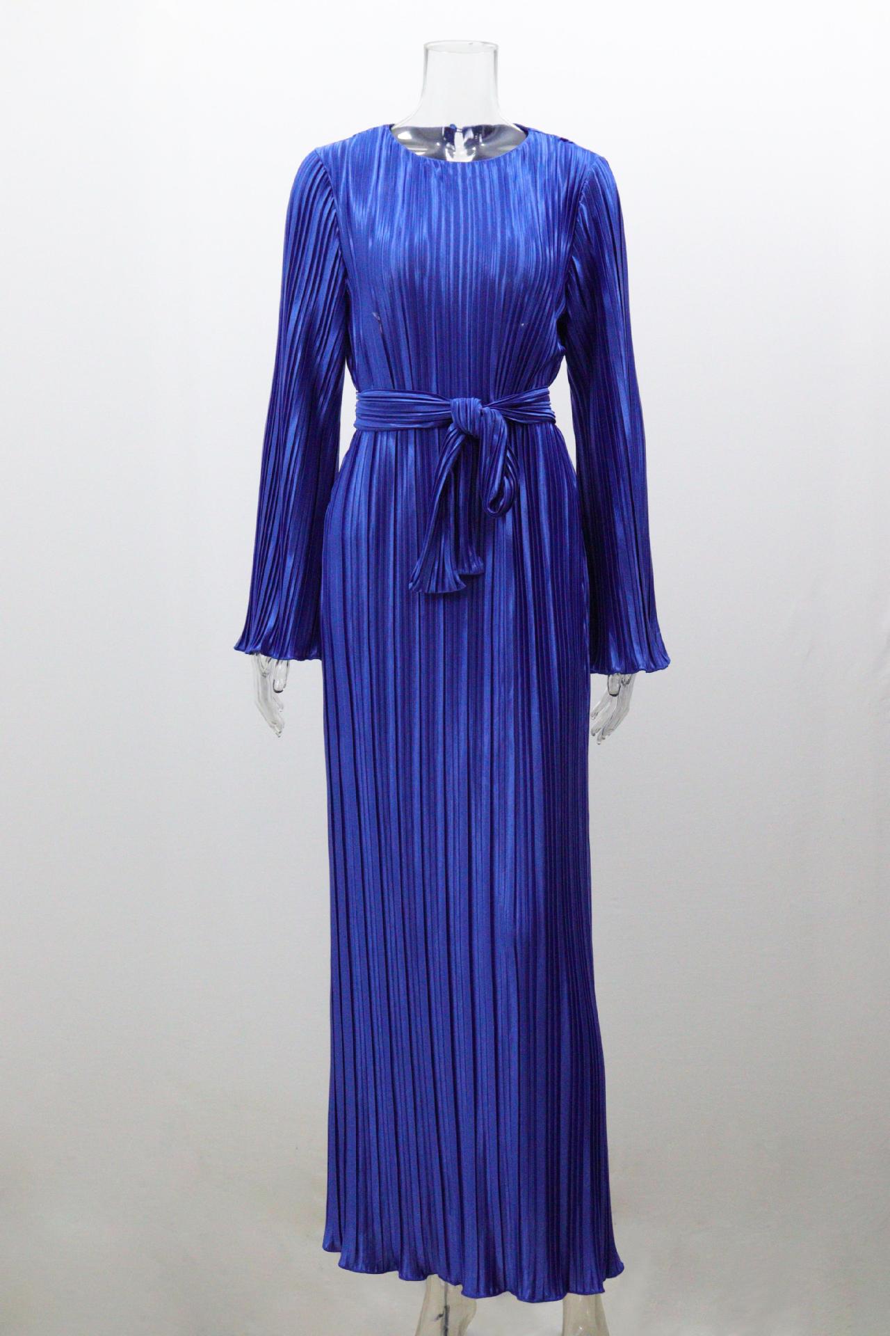 유럽과 미국 스타일 여성의 2024 봄과 가을 새로운 패션 원피스 여성의 캐주얼 단색 둥근 목 뿔 소매 주름 원피스스토어 가기