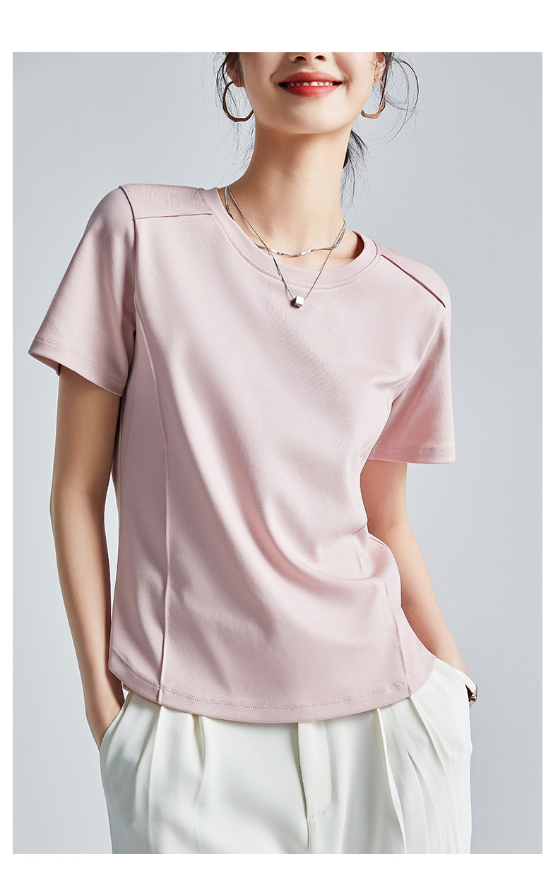 쇼핑몰 같은 스타일 액체 암모니아 화이트 반팔 어깨 티셔츠 여성용 25 여름 머서라이즈면 크루 넥베이스 셔츠 반소매