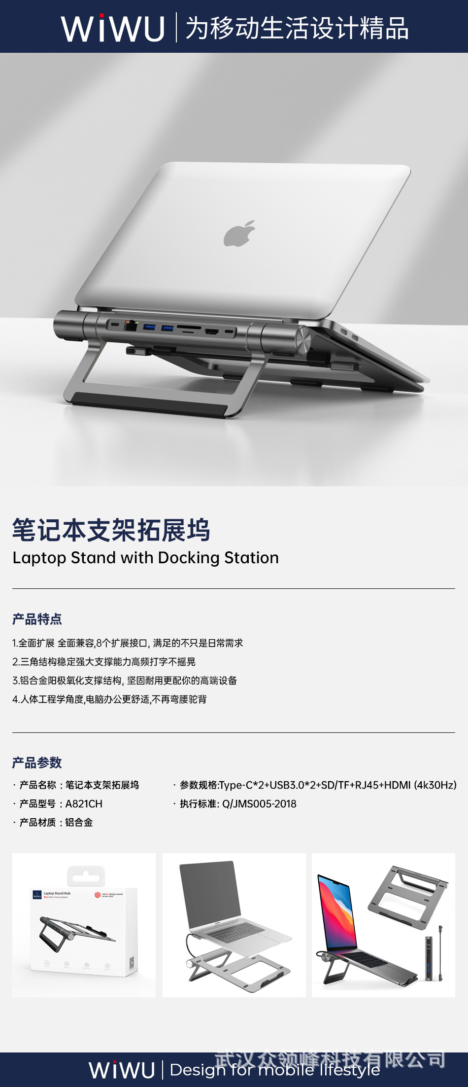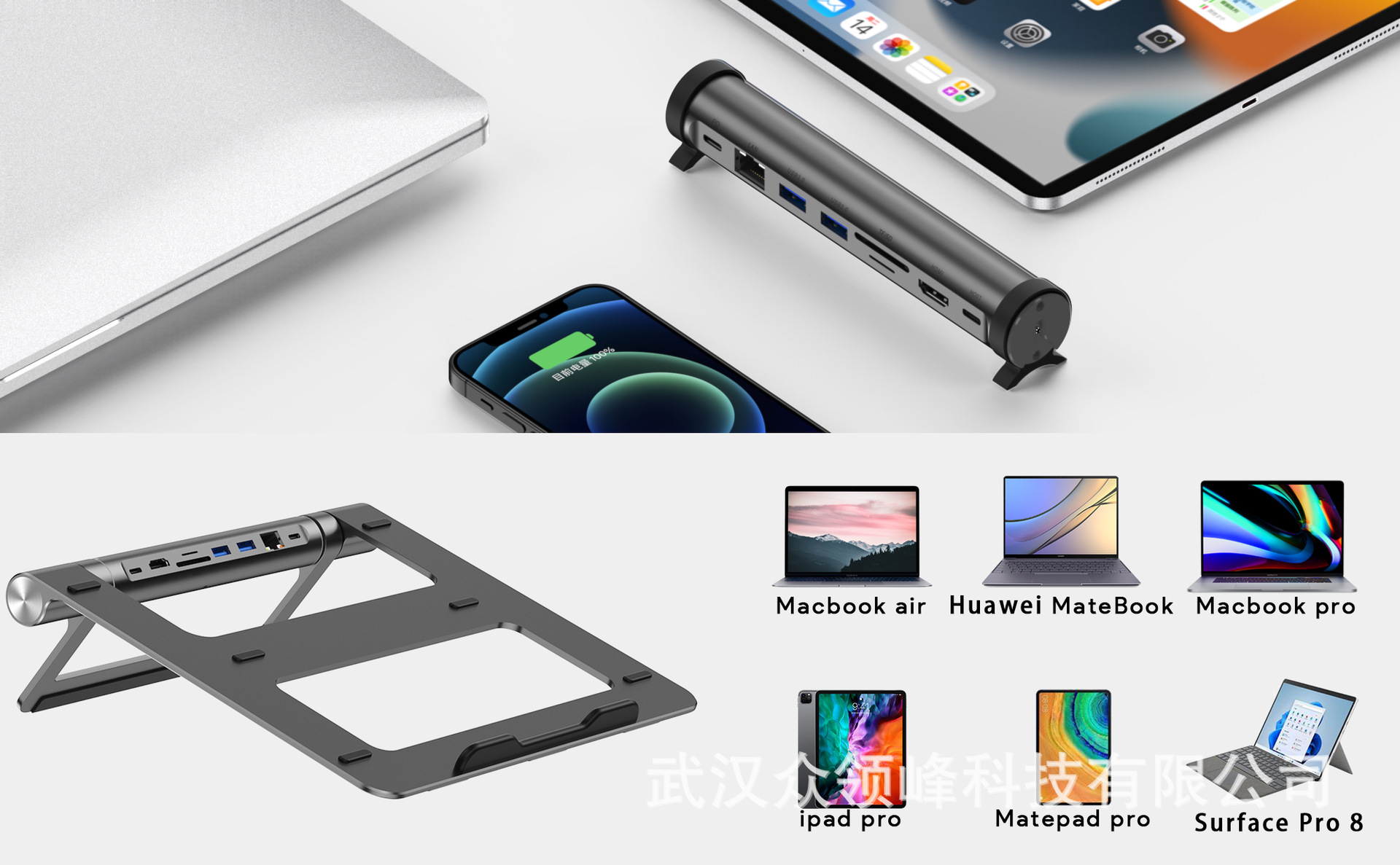노트북 스탠드 확장 도크 Type-C*2+USB3.0*2+SD/TF+RJ45+HDMI() 다중 인터페이스 허브