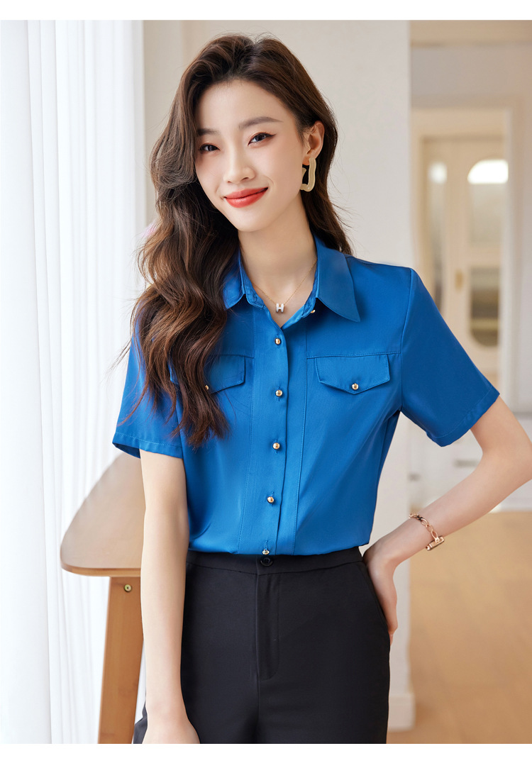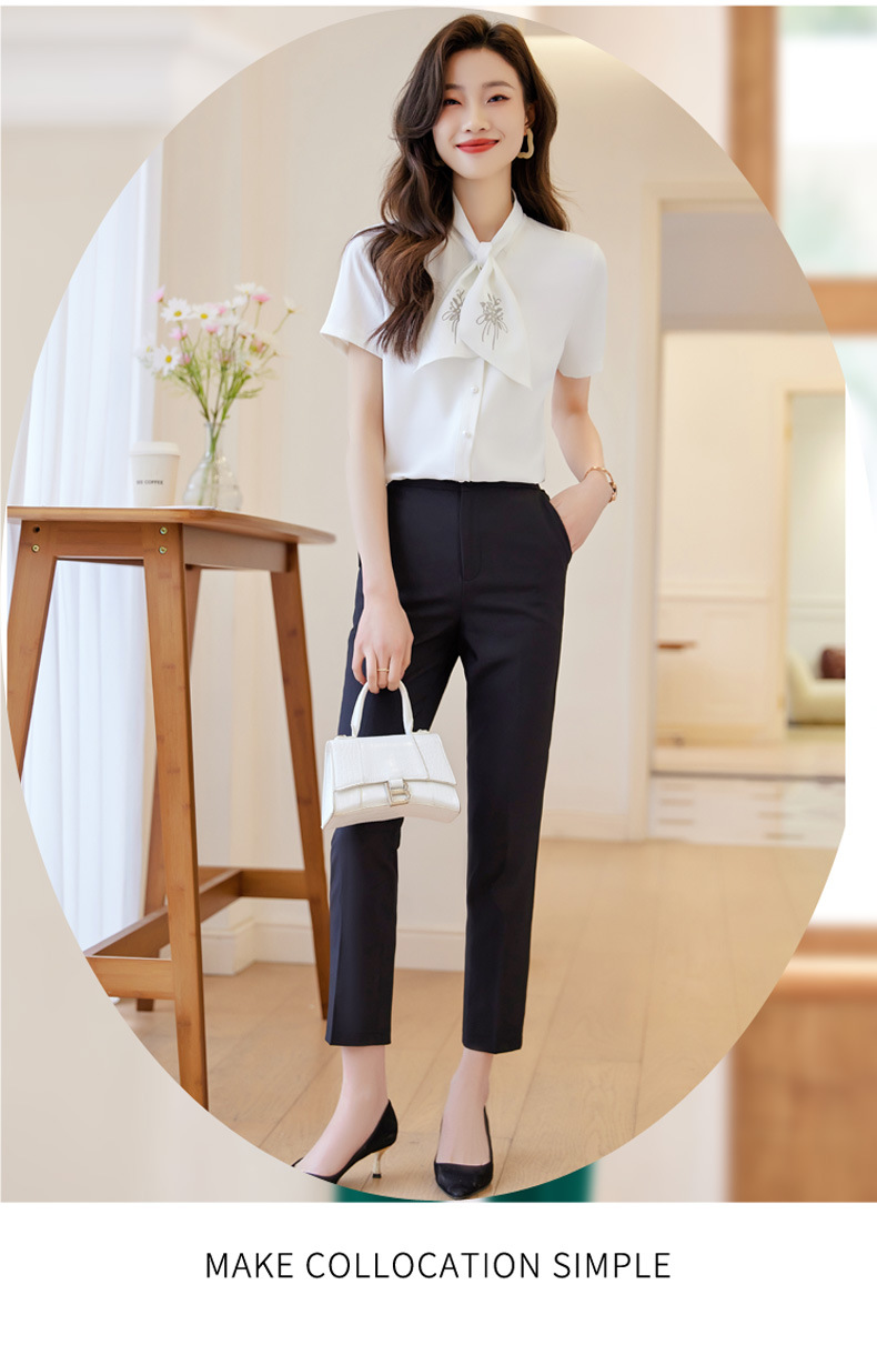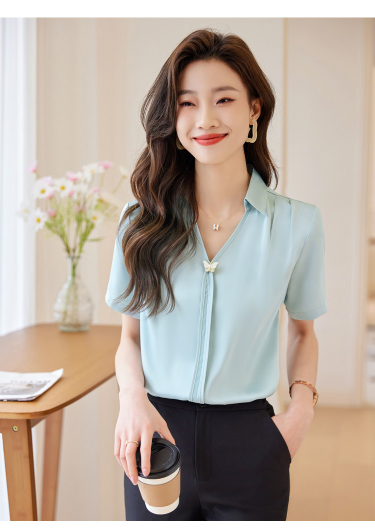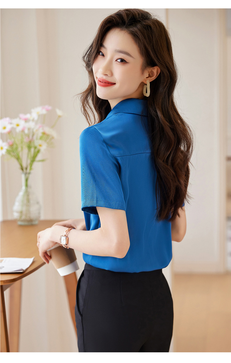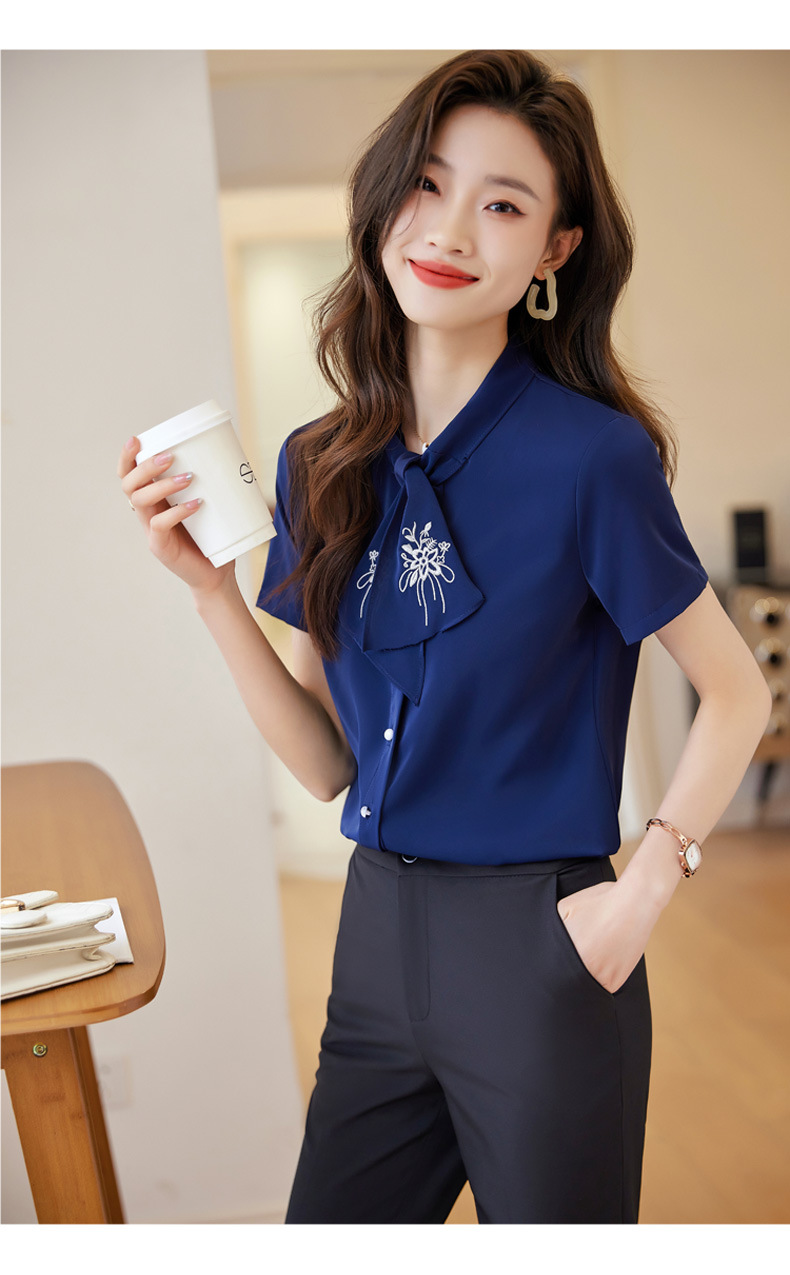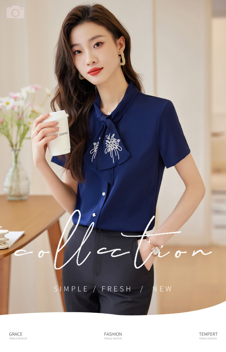Acetic Acid Satin White 셔츠 여성용 반팔 최고 여름 얇은 활 넥타이 새로운 스타일 우아한 작업 셔츠 작업 옷스토어 가기