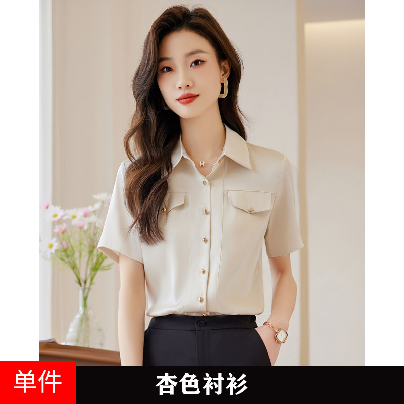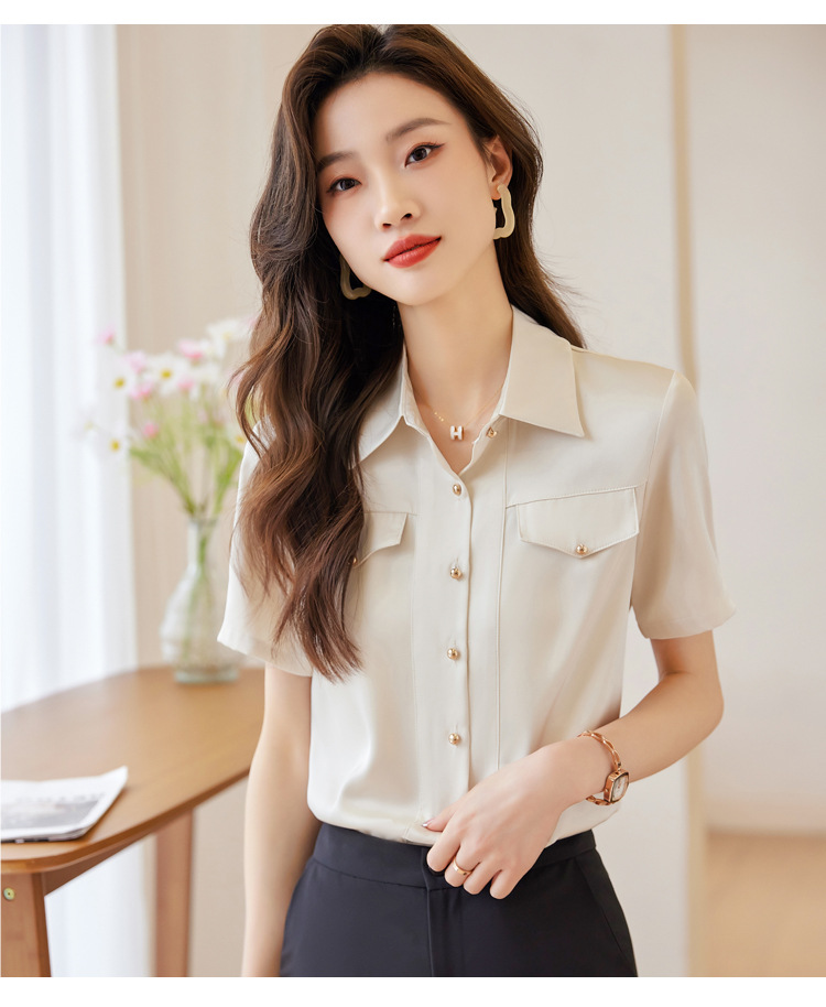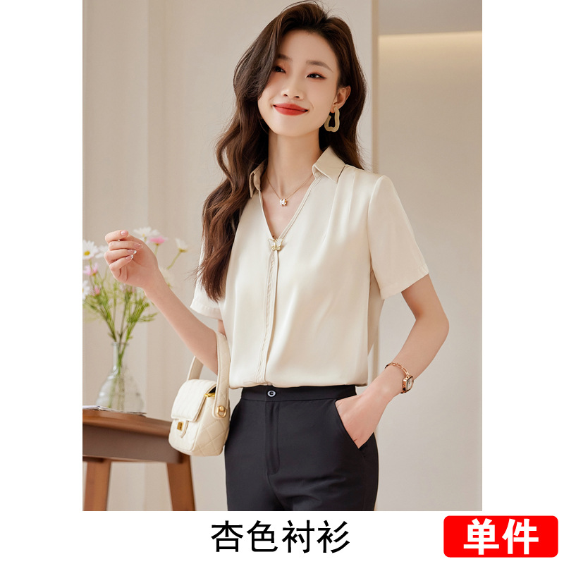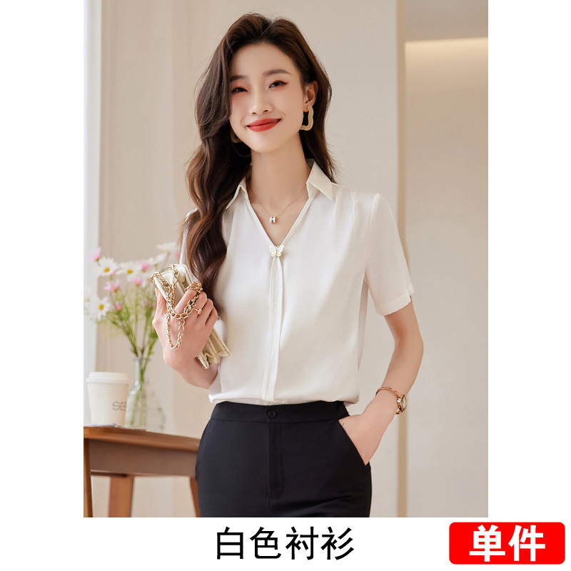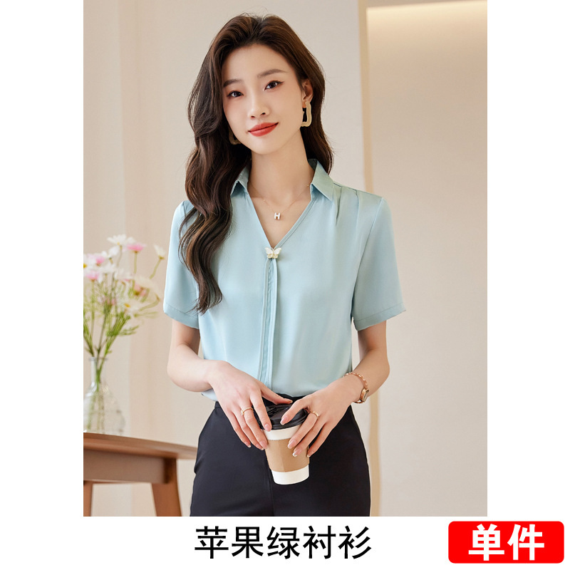 Acetic Acid Satin White 셔츠 여성용 반팔 최고 여름 얇은 활 넥타이 새로운 스타일 우아한 작업 셔츠 작업 옷