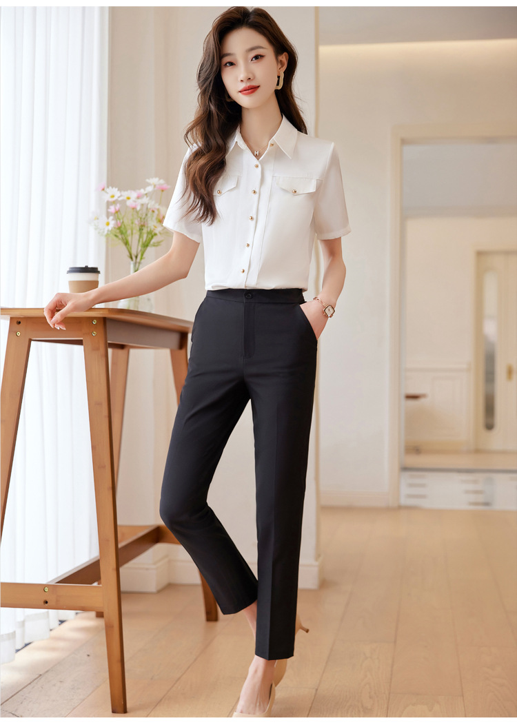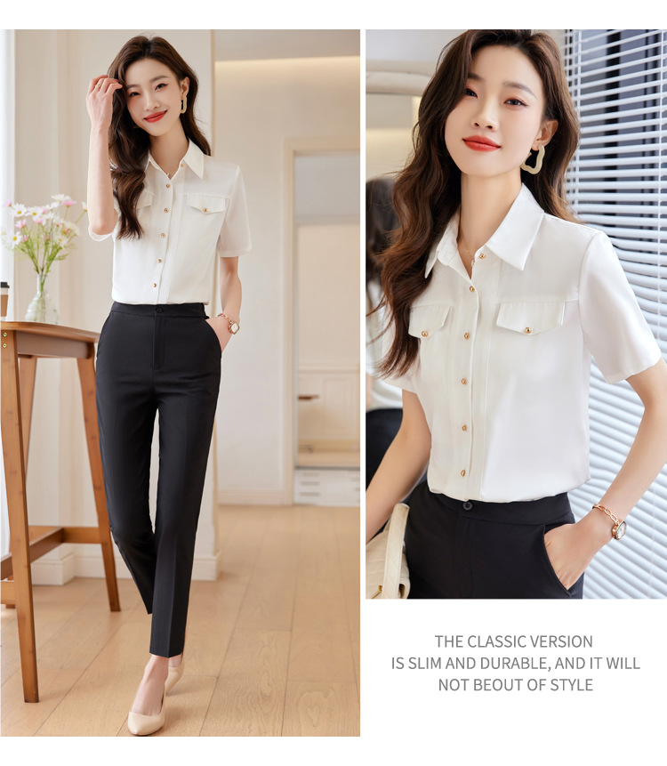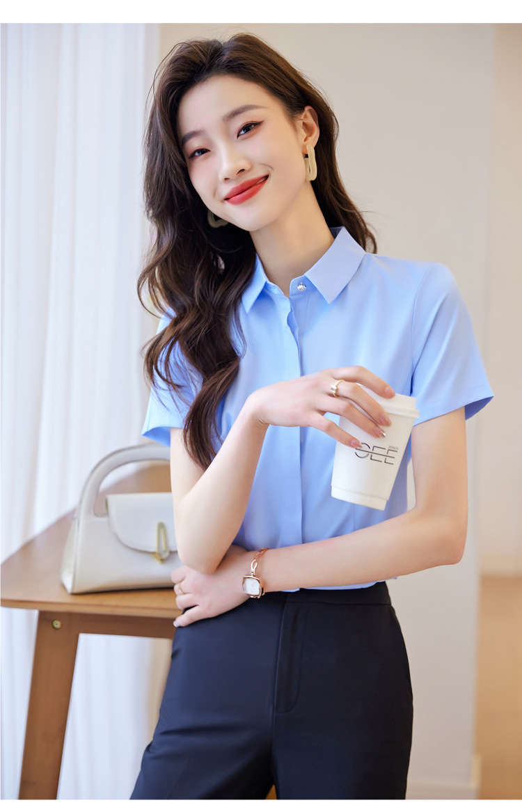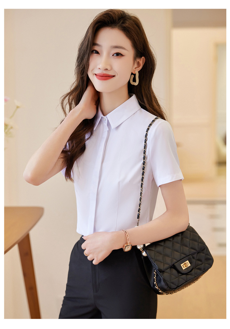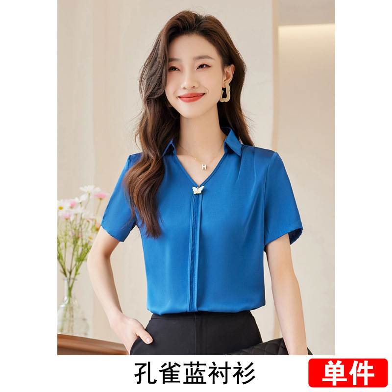 Acetic Acid Satin White 셔츠 여성용 반팔 최고 여름 얇은 활 넥타이 새로운 스타일 우아한 작업 셔츠 작업 옷
