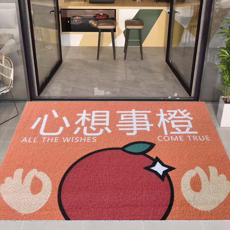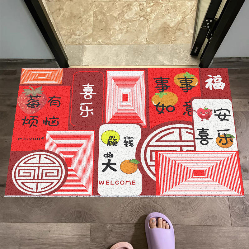 현관 바닥 매트, 고급 PVC 만화 카펫, 현관 문, 얼룩 방지 인쇄, 기쁨 및 오일 방지 와이어 링 바닥 매트