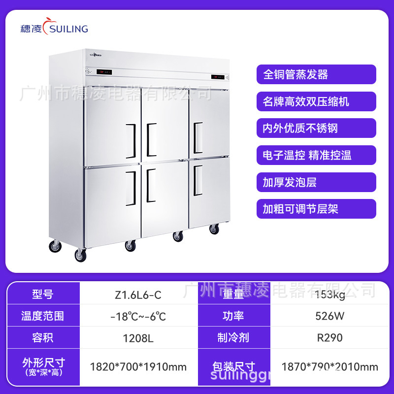 Suiling 스팟 냉동고 상업용 냉동고 4 도어 6 도어 스테인레스 스틸 냉장 냉동 보존 캐비닛 냉장고 주방 캐비닛스토어 가기