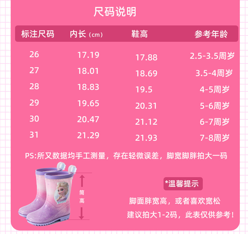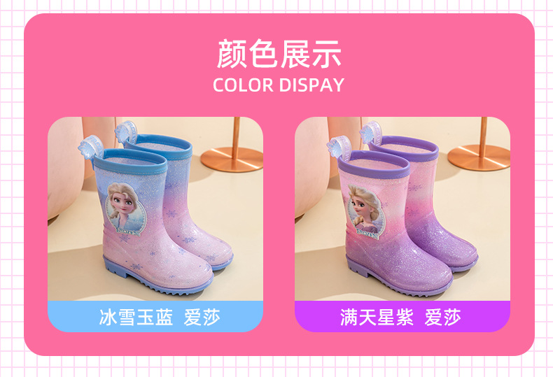 어린이 비 부츠 소녀 미끄럼 귀여운 고무 신발 공주 엘사 소녀 유치원 어린이 여성 방수 장화스토어 가기