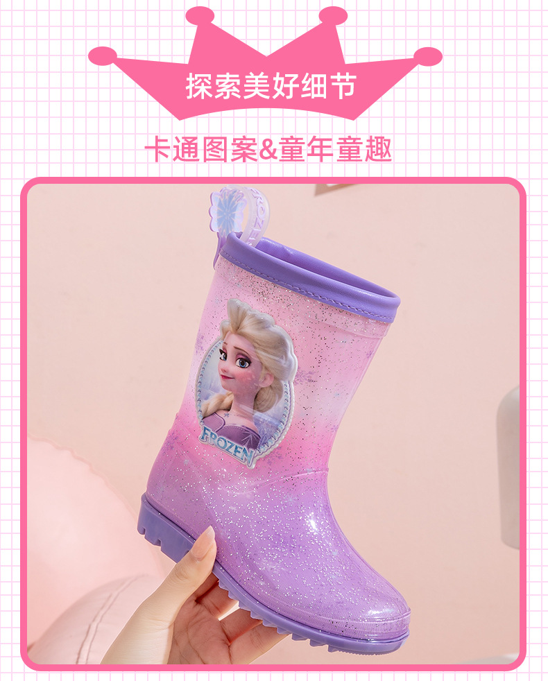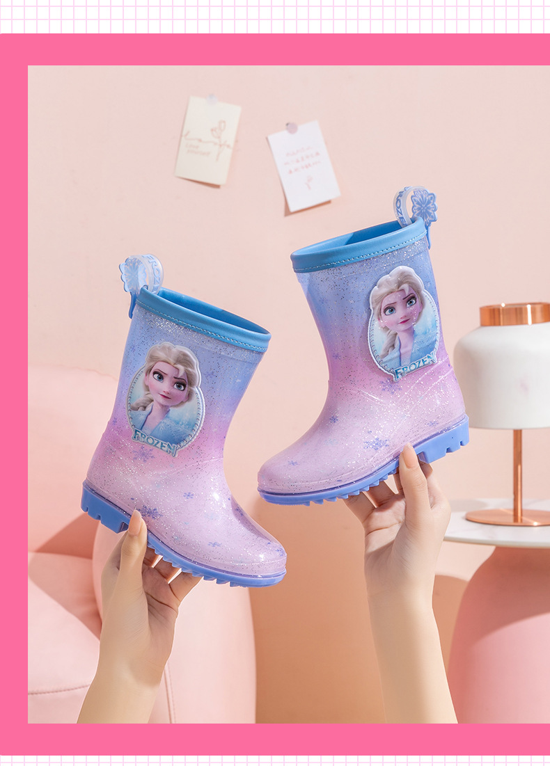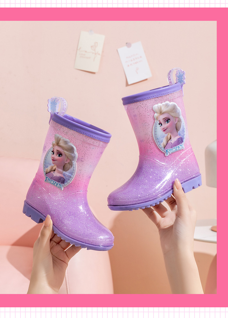 어린이 비 부츠 소녀 미끄럼 귀여운 고무 신발 공주 엘사 소녀 유치원 어린이 여성 방수 장화