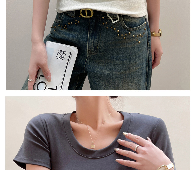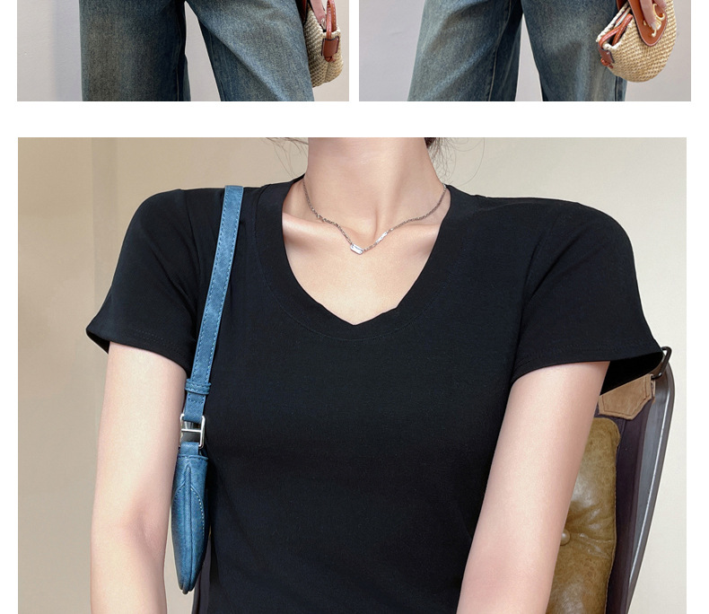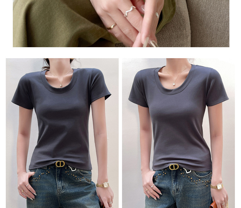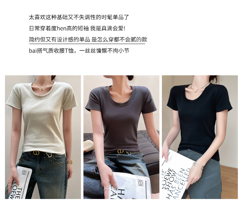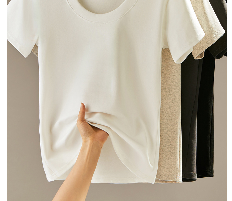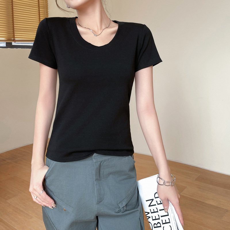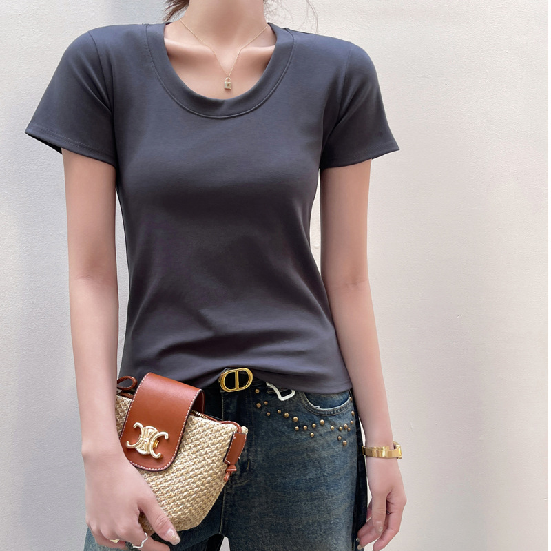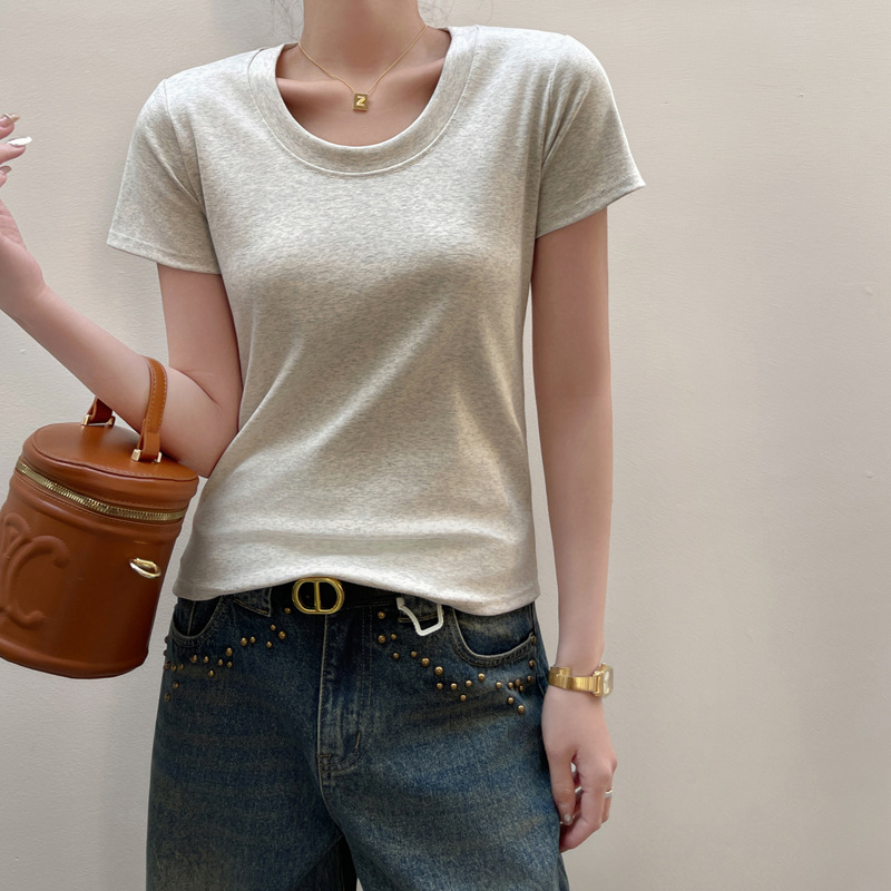 여성용 클래식 순면 라운드 넥 오른쪽 어깨 반팔 티셔츠 2025 신작 T 봄 여름 웨어러블 슬림 바닥 셔츠스토어 가기