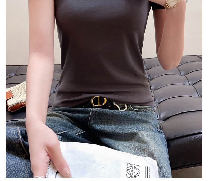 여성용 클래식 순면 라운드 넥 오른쪽 어깨 반팔 티셔츠 2025 신작 T 봄 여름 웨어러블 슬림 바닥 셔츠