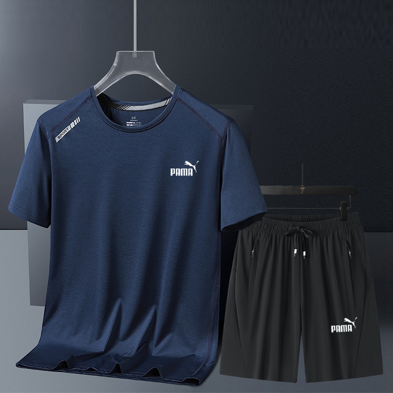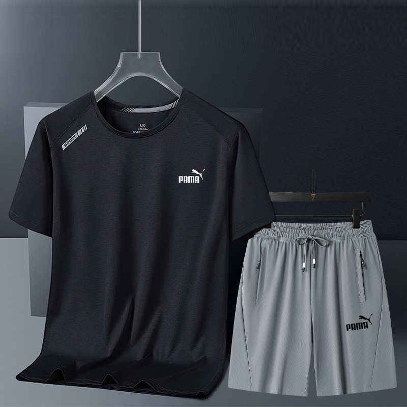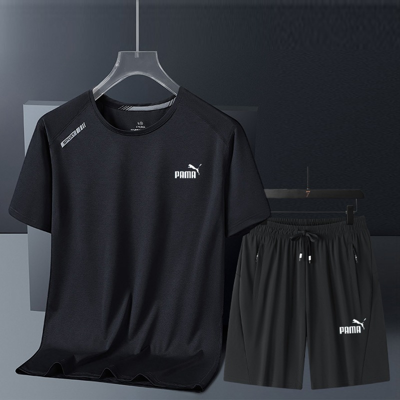 폭발성 브랜드 아이스 실크 스포츠 세트 남자 여름 플러스 사이즈 얇은 캐주얼 반팔 티셔츠 반바지 빠른 건조 투피스 세트