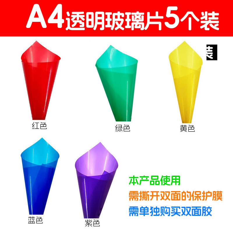 • 투명유리시트 A4 [5개입] 빨간색 1+노란색 1+파란색 1+녹색 1+보라색 1