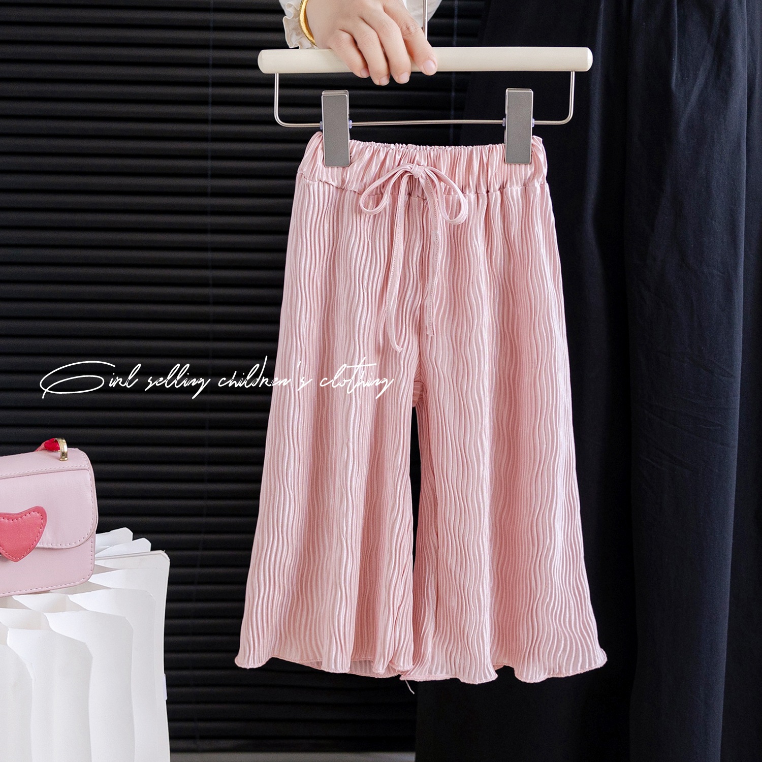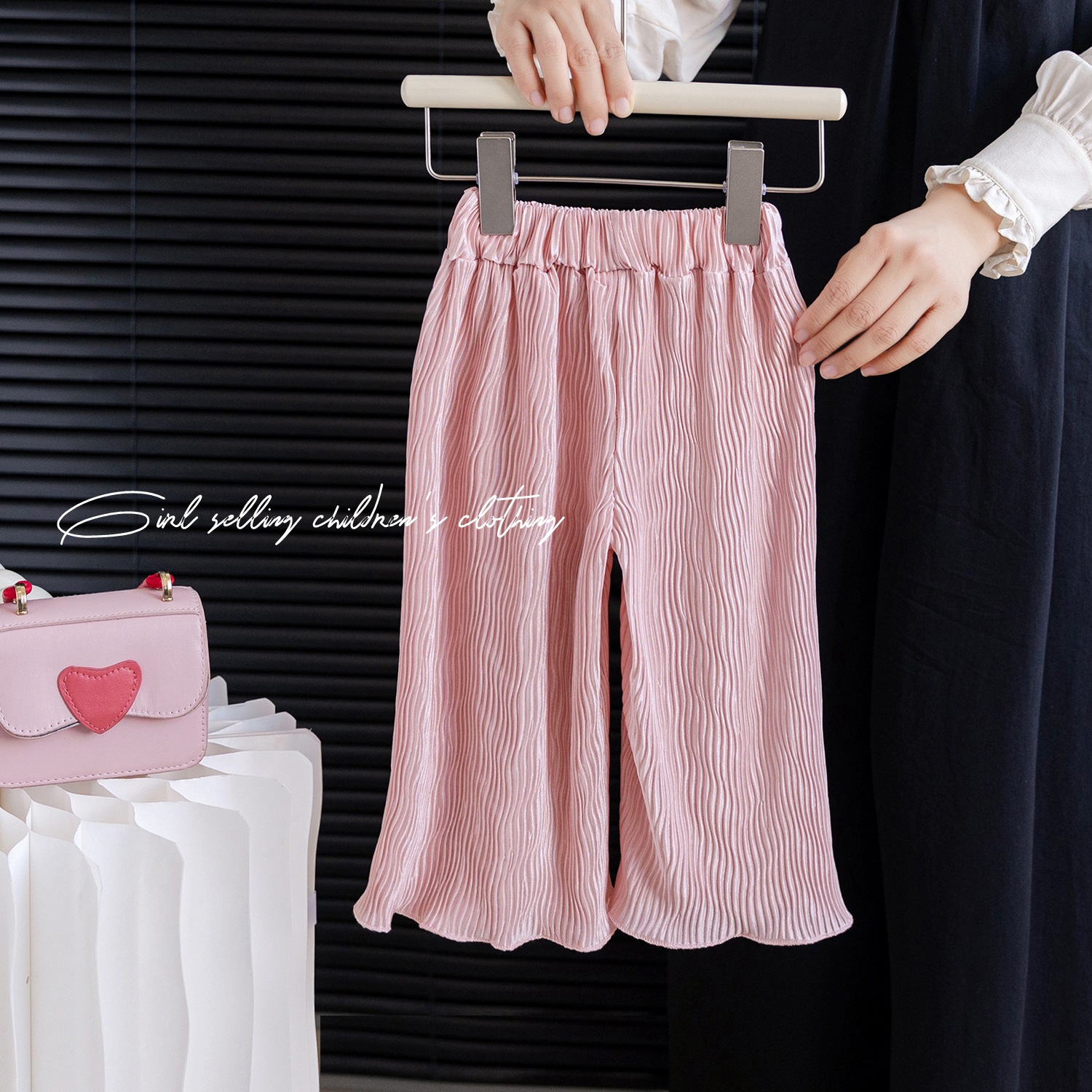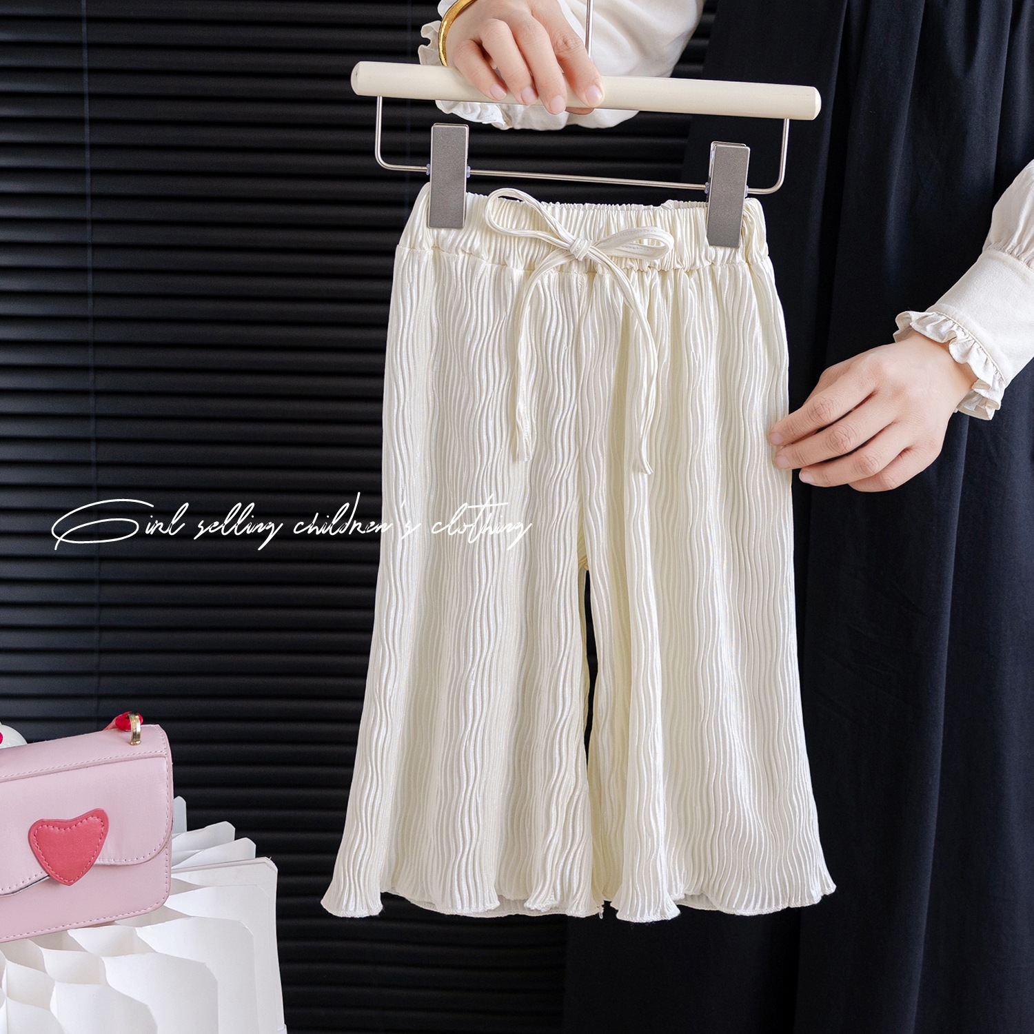 아기 소녀의 여름 얼음 실크 흔들리는 바지 소녀 여름 한국 스타일 서양식 넓은 다리 바지 어린이 유행 시원한 여름 착용