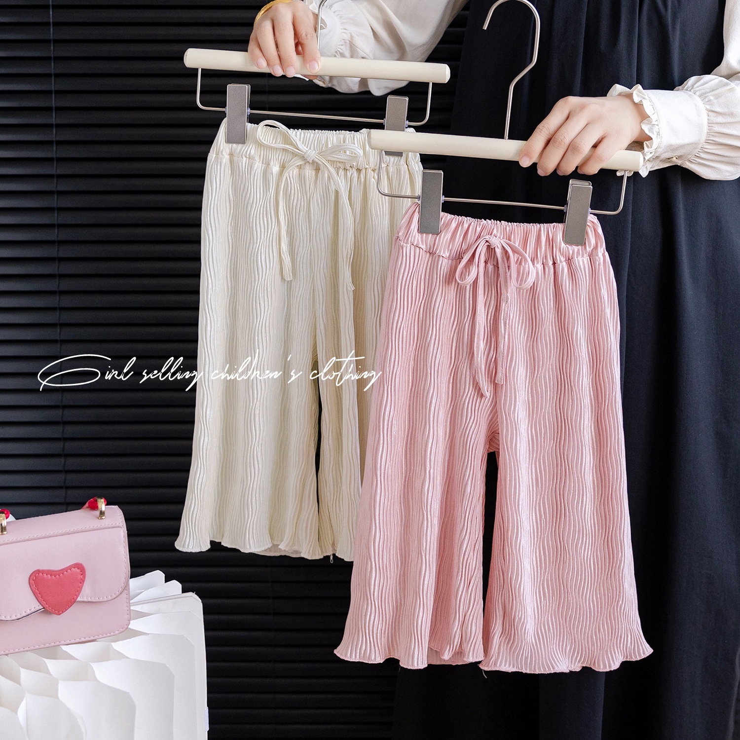 아기 소녀의 여름 얼음 실크 흔들리는 바지 소녀 여름 한국 스타일 서양식 넓은 다리 바지 어린이 유행 시원한 여름 착용스토어 가기