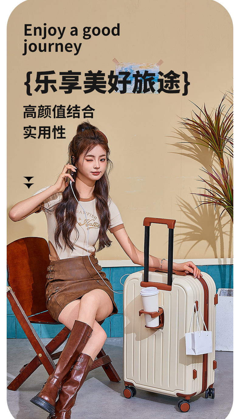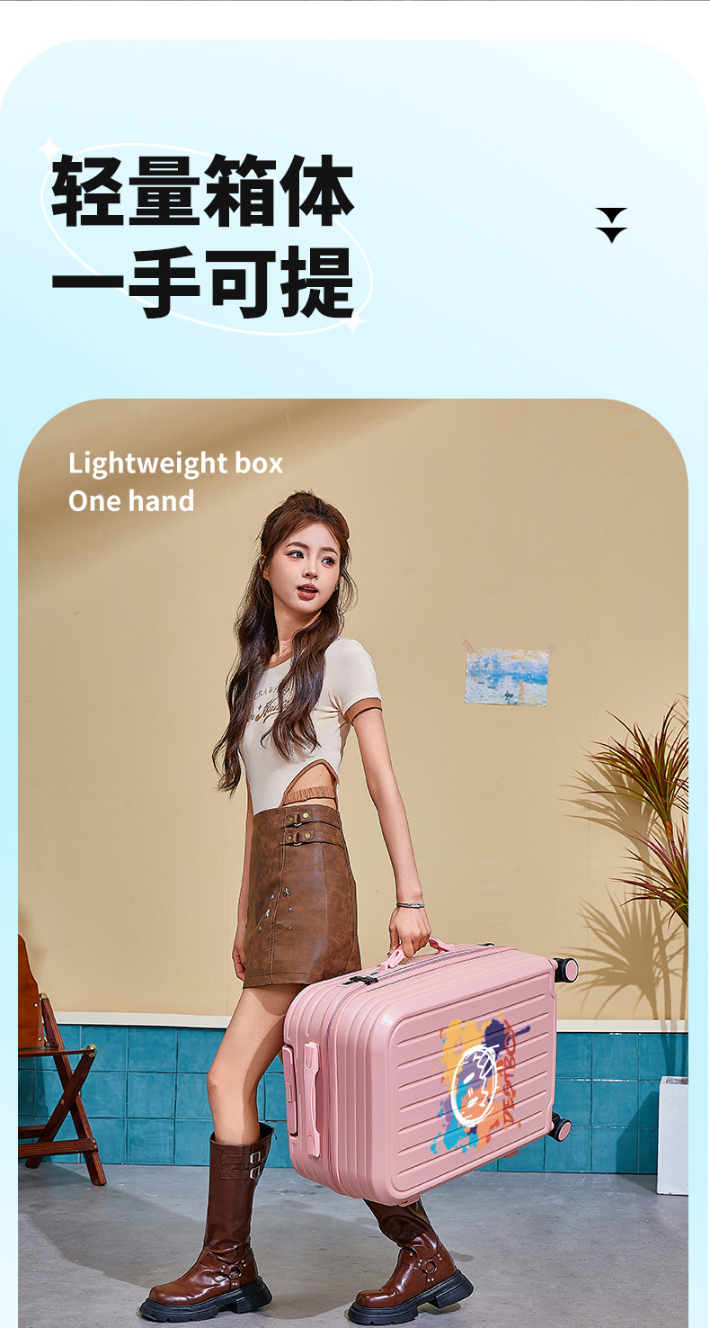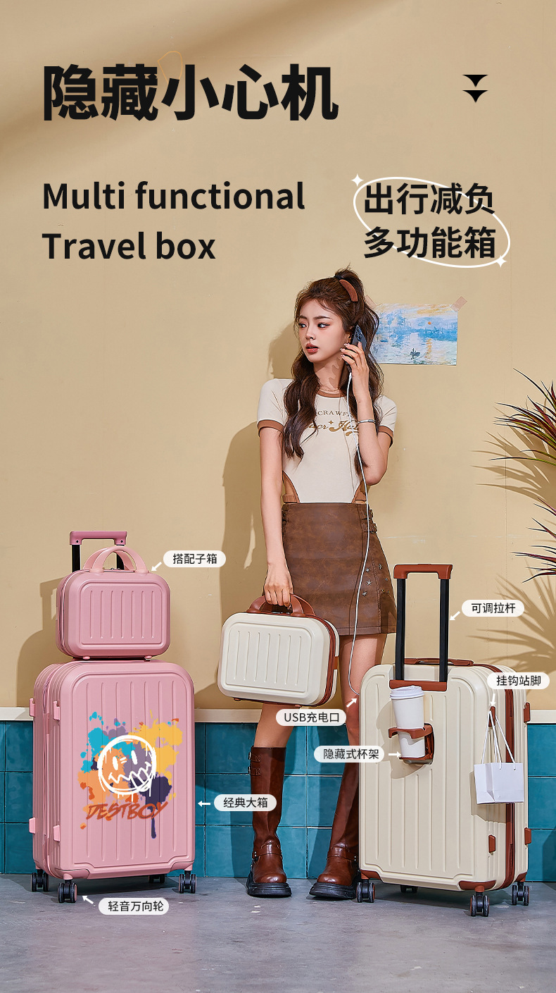 탑승 수하물 케이스 여성의 18 인치 다기능 컵 홀더 충전식 소형 슬롯 박스 트롤리 케이스 경량 여행 비밀번호 상자