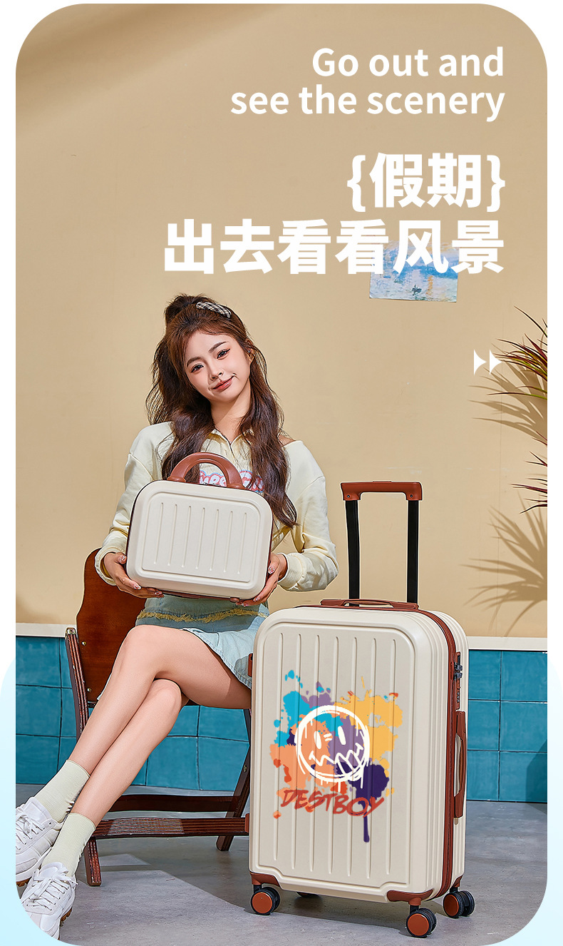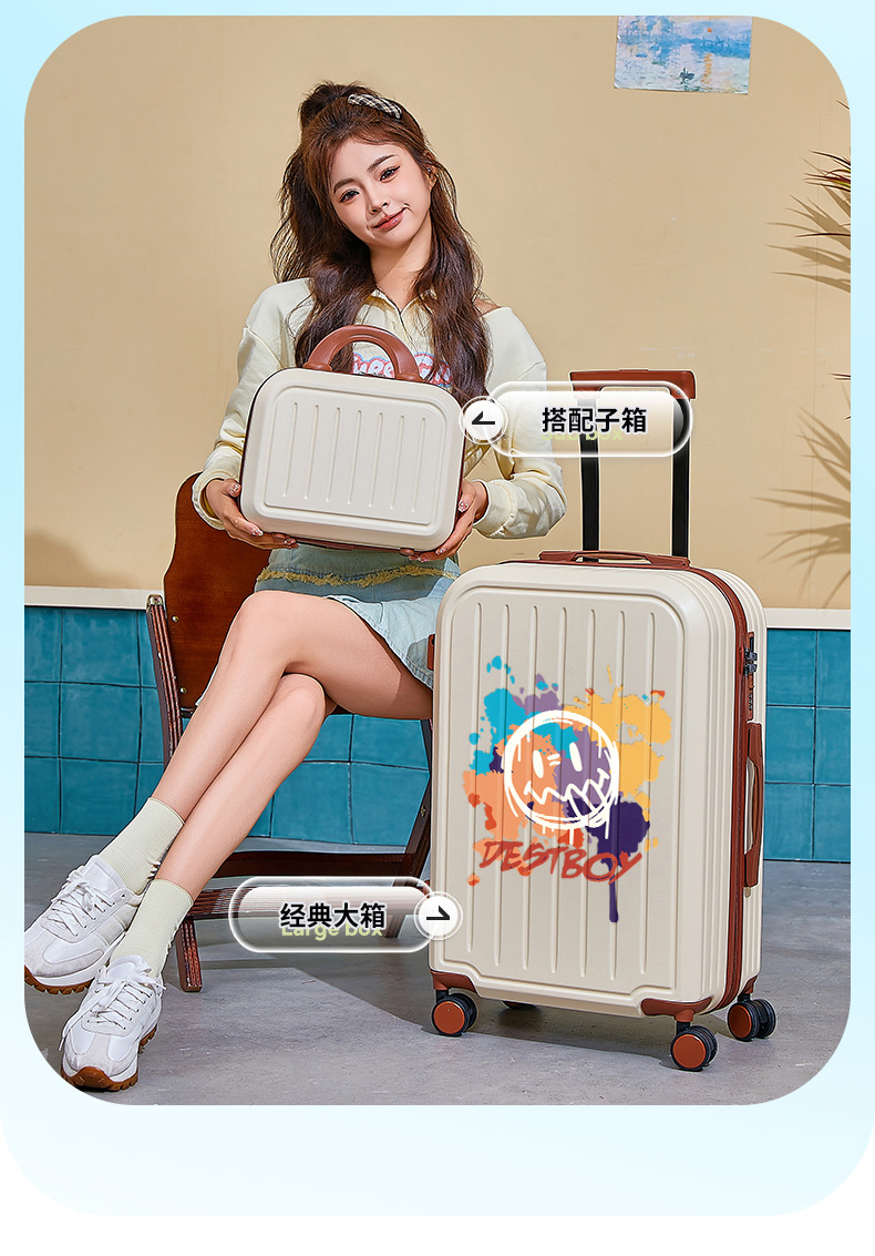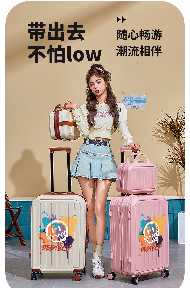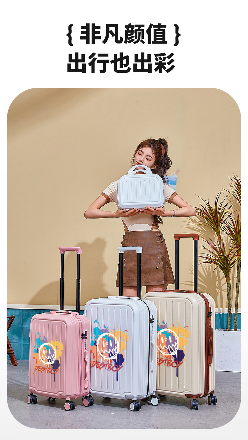 탑승 수하물 케이스 여성의 18 인치 다기능 컵 홀더 충전식 소형 슬롯 박스 트롤리 케이스 경량 여행 비밀번호 상자
