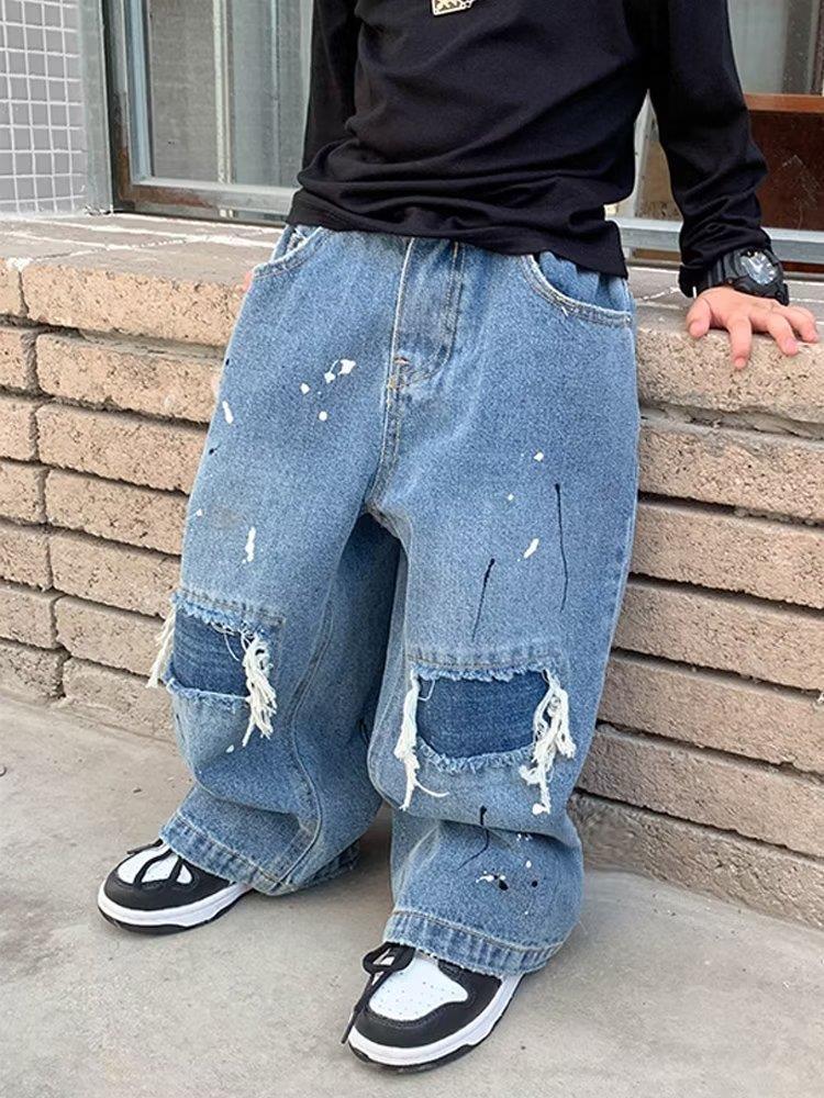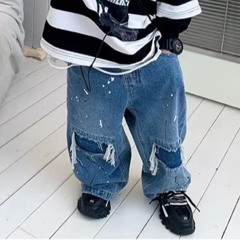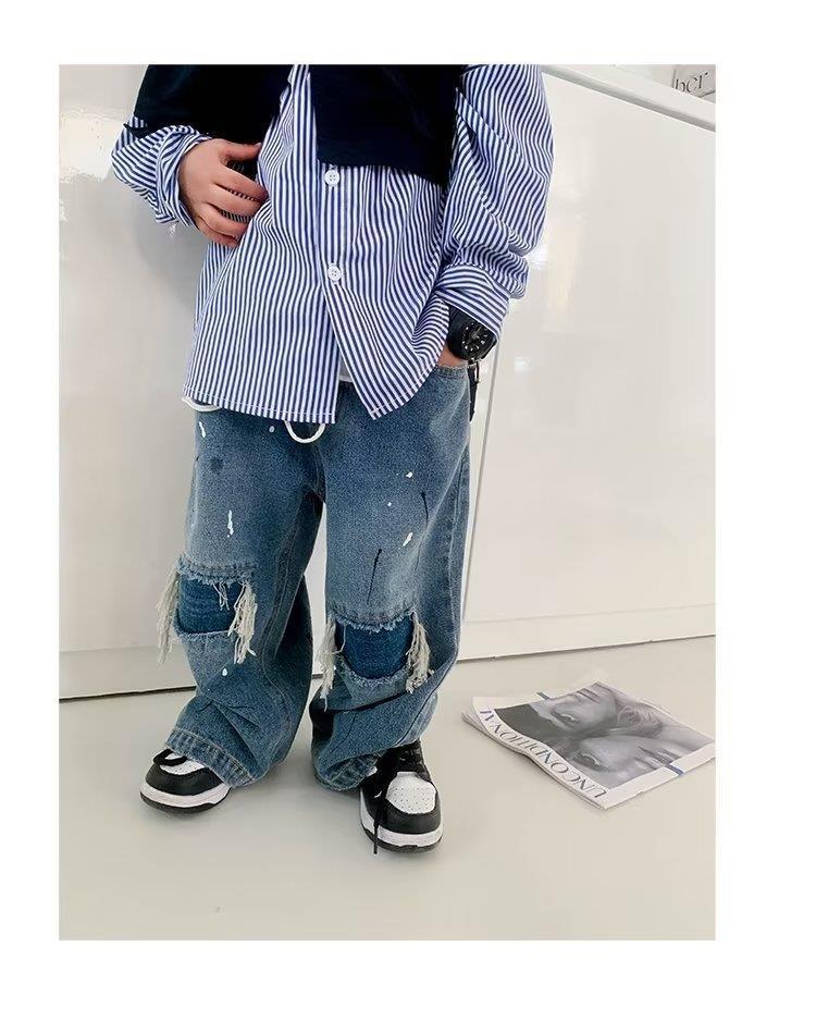 24 봄과 여름 새로운 아동복 말 브랜드 어린이 얇은 스트레이트 청바지, 소년 소녀를위한 데님 바지 세척