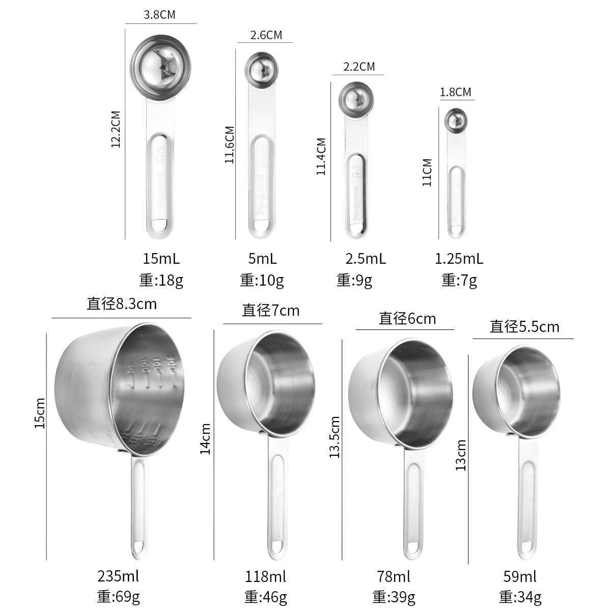 스테인레스 스틸 측정 컵 측정 숟가락 창조적 인 조각 측정 조미료 가정용 주방 베이킹 가제트 측정 스푼 세트