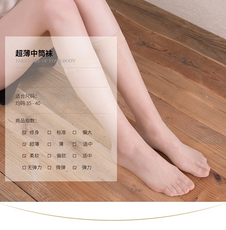 여성용 안티 걸기 실크 스타킹 여름 초박형 하프 블랙 미트 컬러 봄과 가을 어린이를위한 중간 길이 하프 튜브 송아지 양말스토어 가기