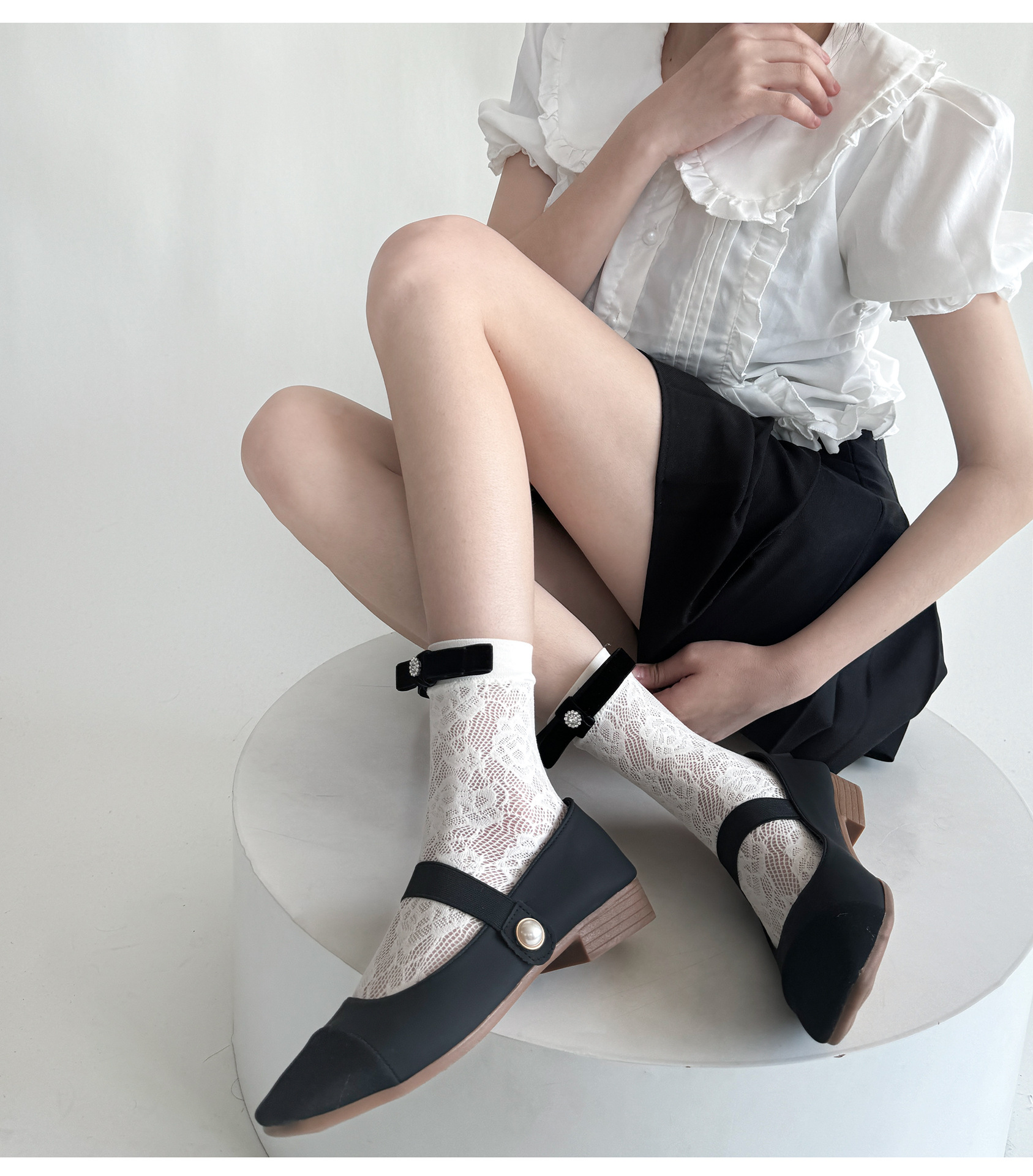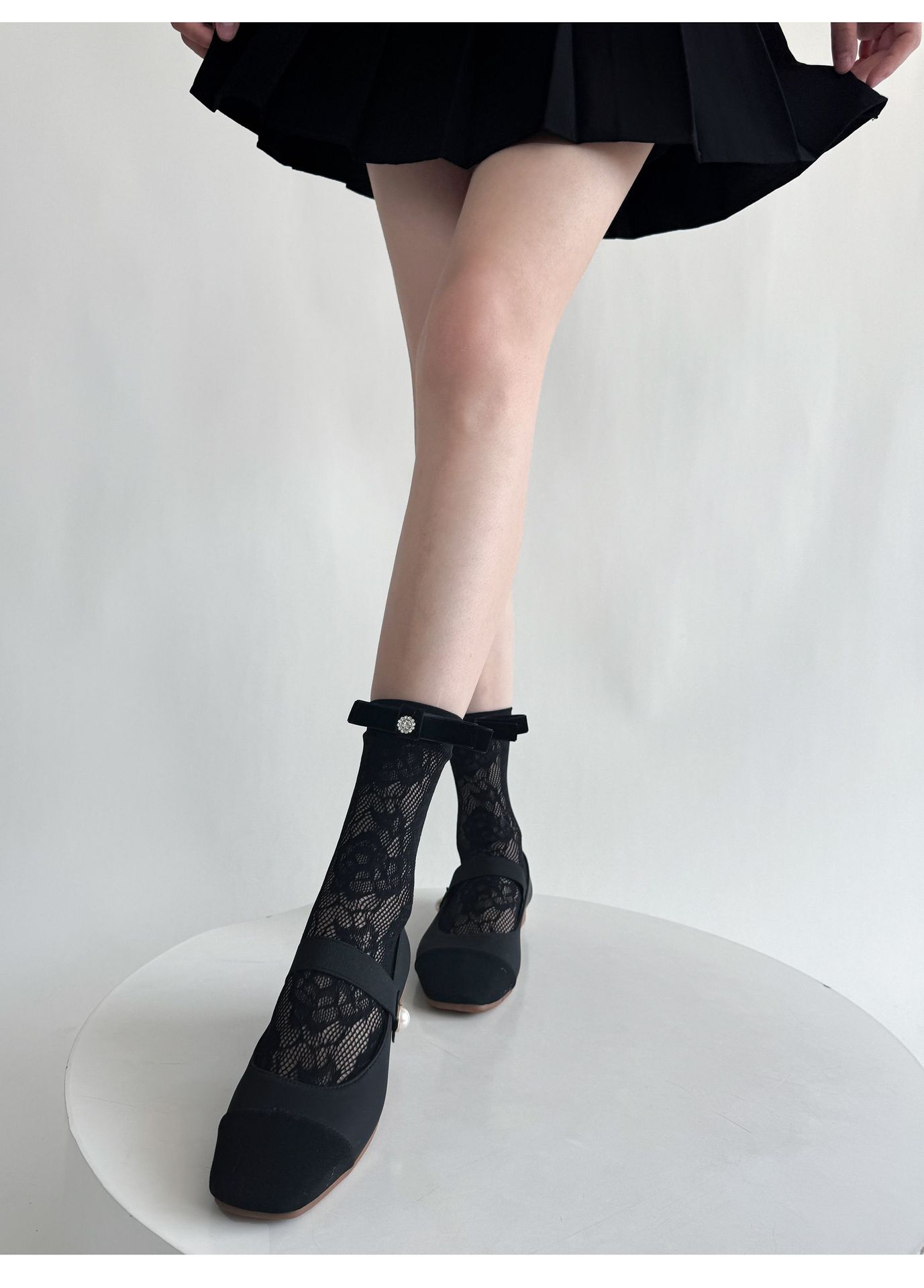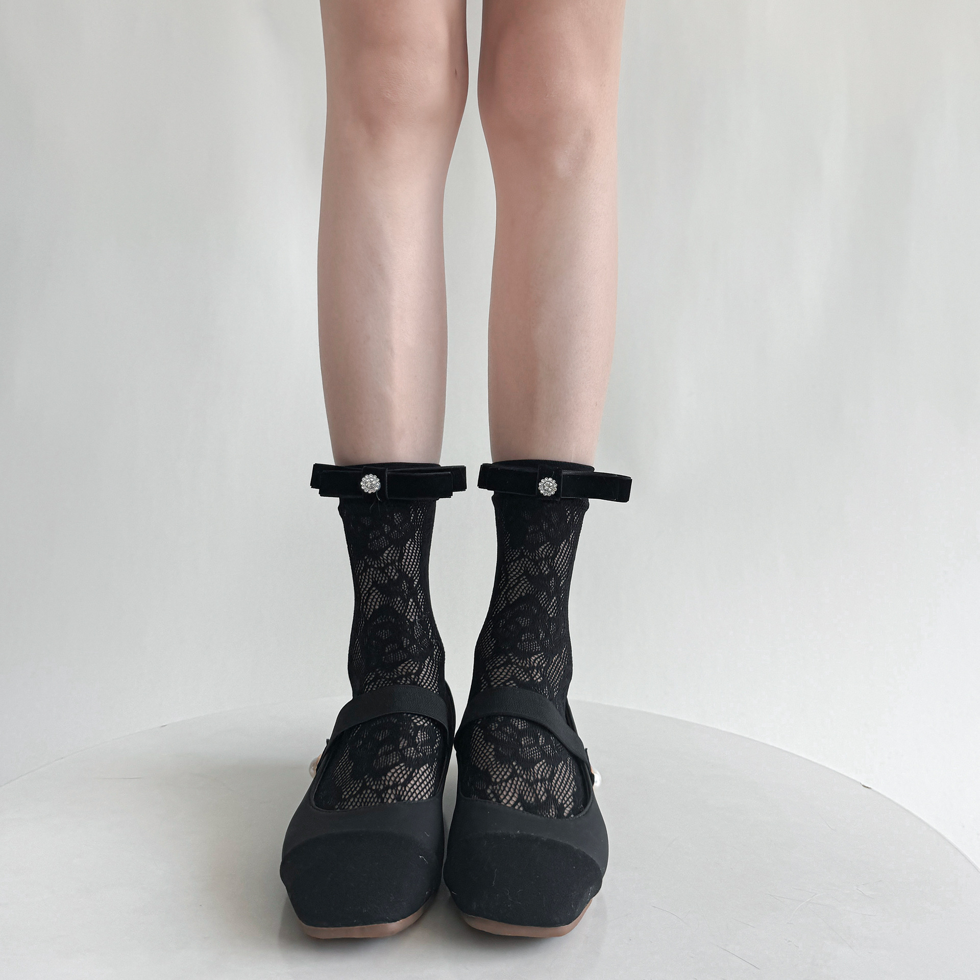 일본 빈티지 화려한 다이아몬드 벨벳 활 레이스 꽃 달콤한 우유 화이트 넷 스타킹 여성 짧은 튜브 작은 향기로운 스타일 블랙