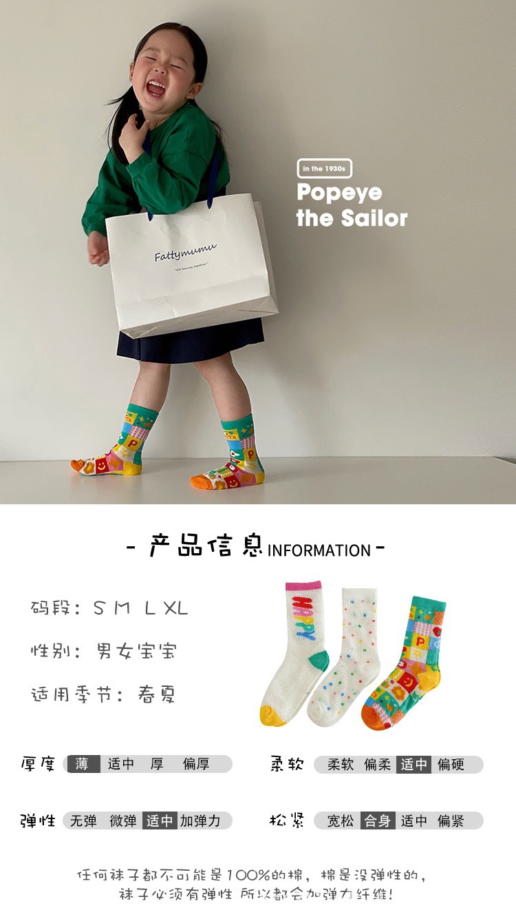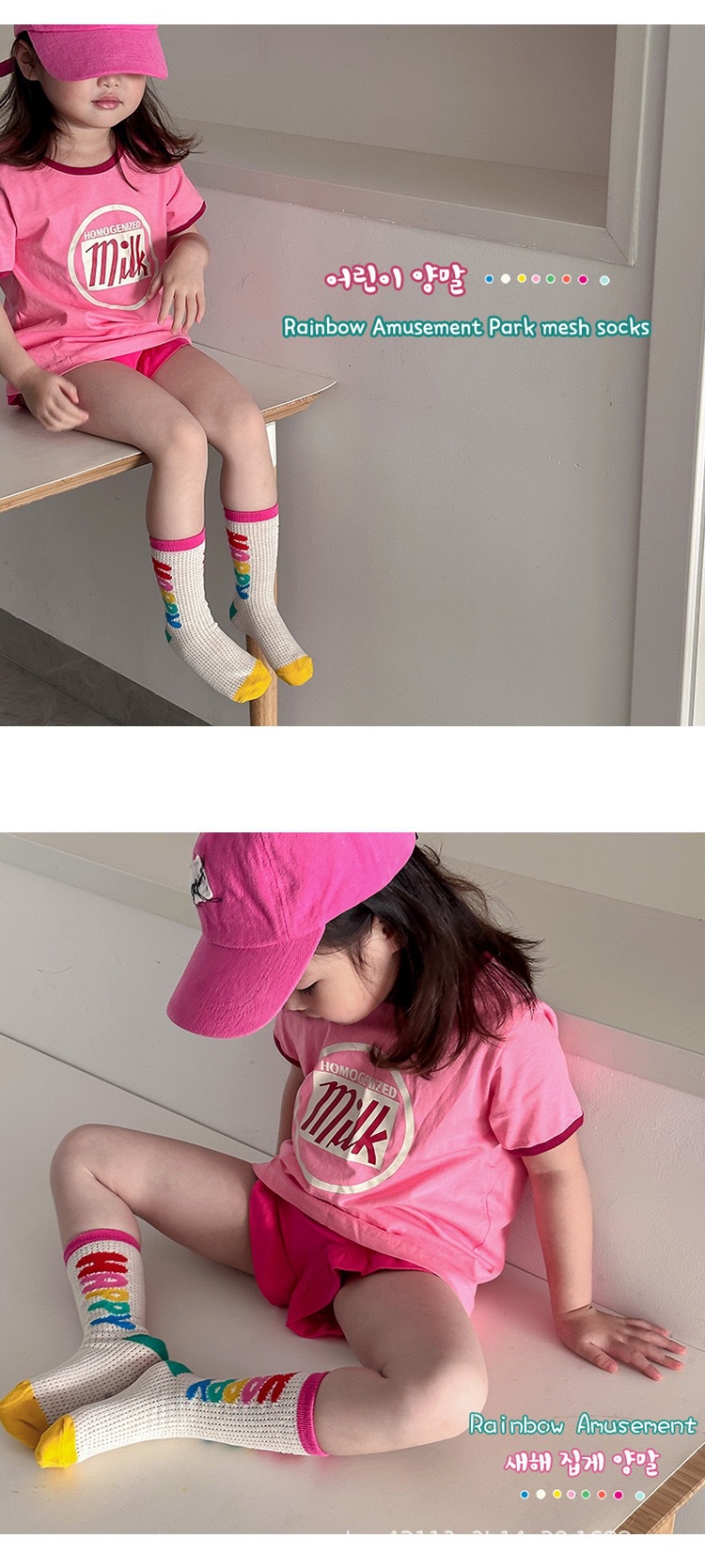봄과 여름 얇은 어린이 양말 소녀 면화 웨이브 포인트 무지개 통기성 메쉬 아기 소녀 긴 양말스토어 가기