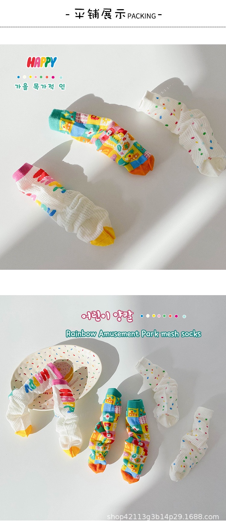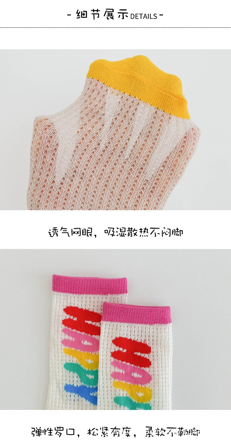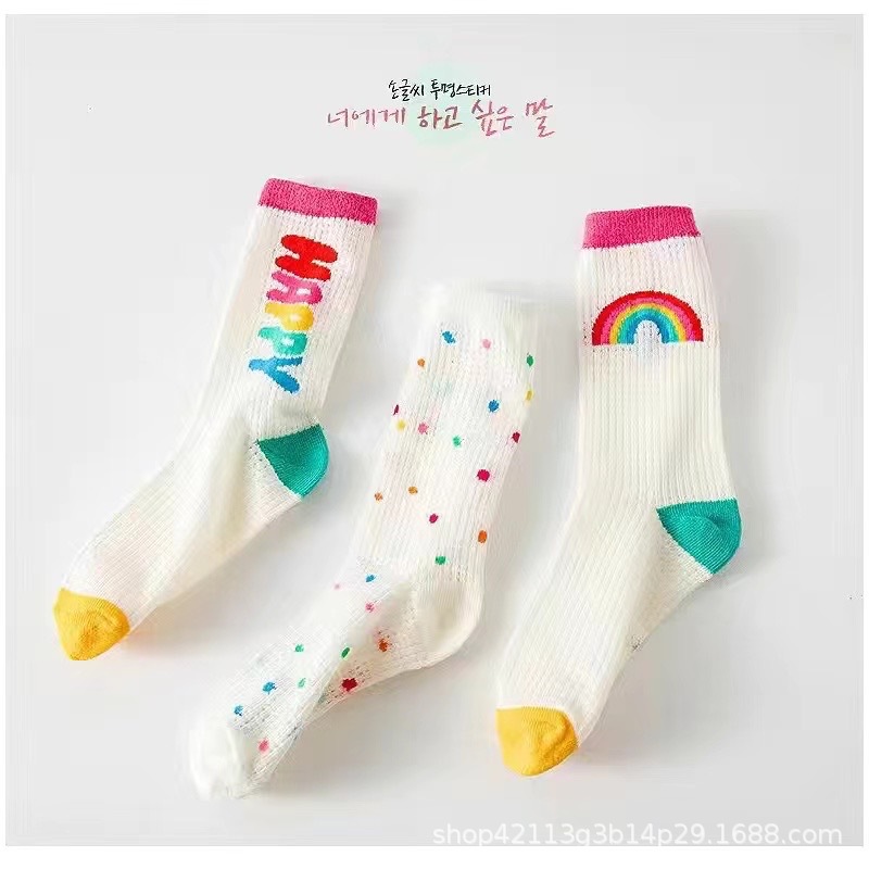봄과 여름 얇은 어린이 양말 소녀 면화 웨이브 포인트 무지개 통기성 메쉬 아기 소녀 긴 양말