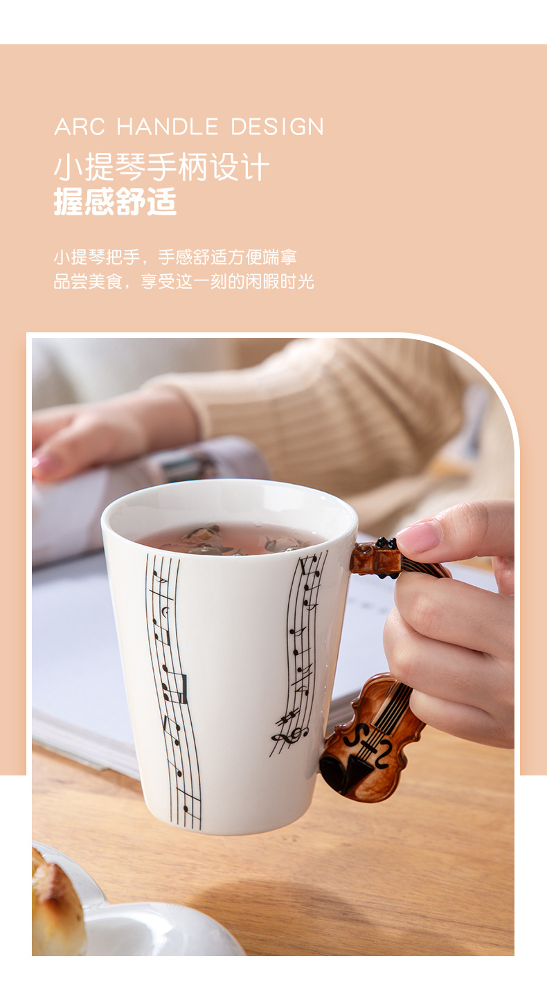 저작권 머그잔 스탬프 창조적 인 바이올린 악기 핸들 세라믹 컵 커피 컵