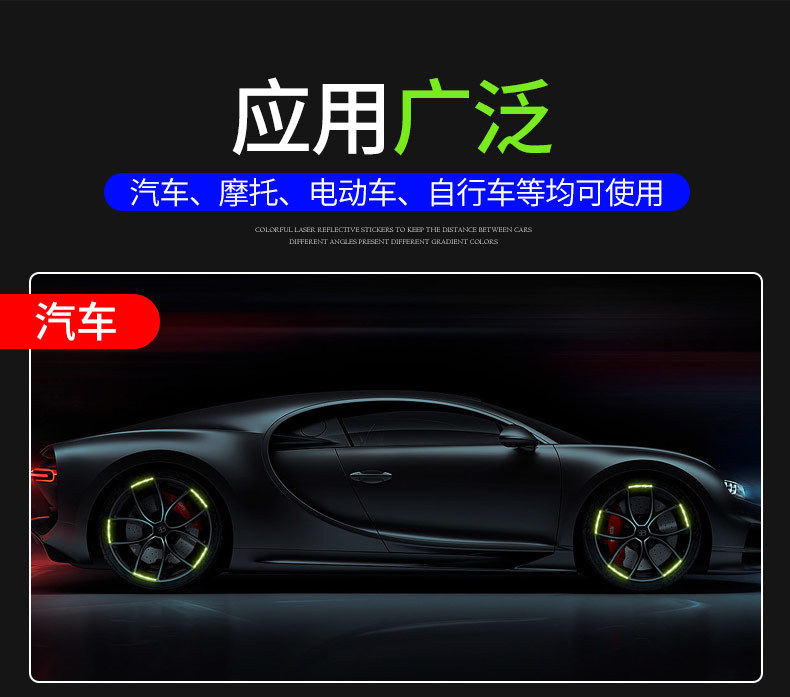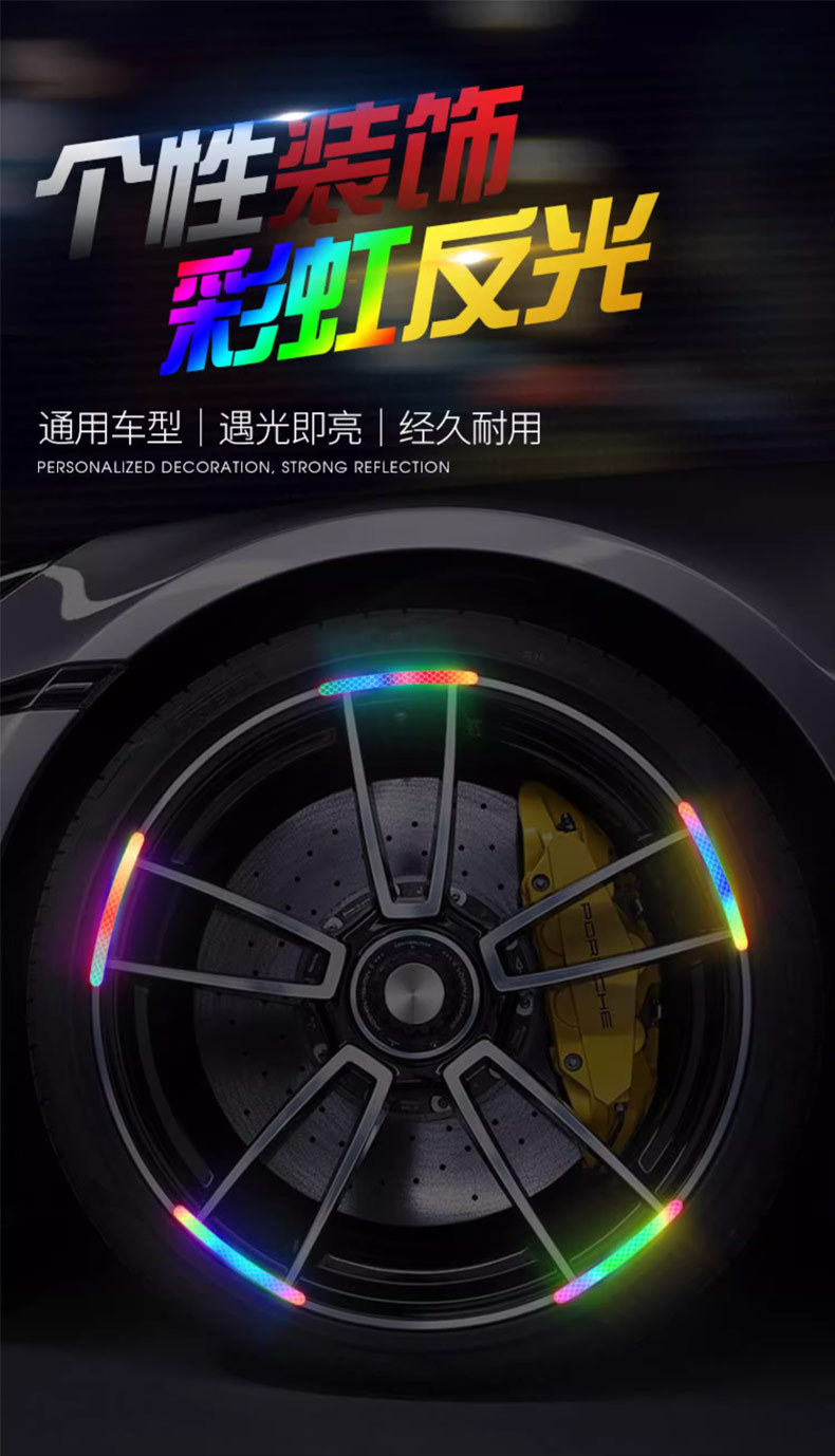 무지개 자동차 휠 반사 스티커 개인화 된 오토바이 전기 자전거 다채로운 반대로 빛나는 장식 스티커스토어 가기