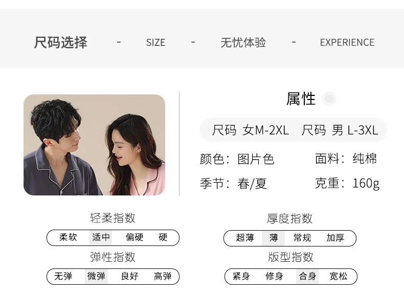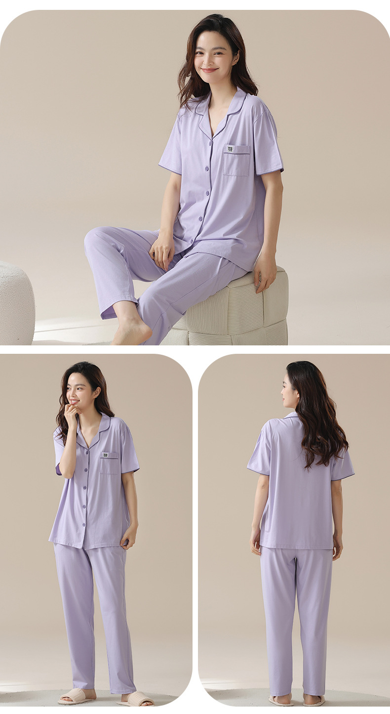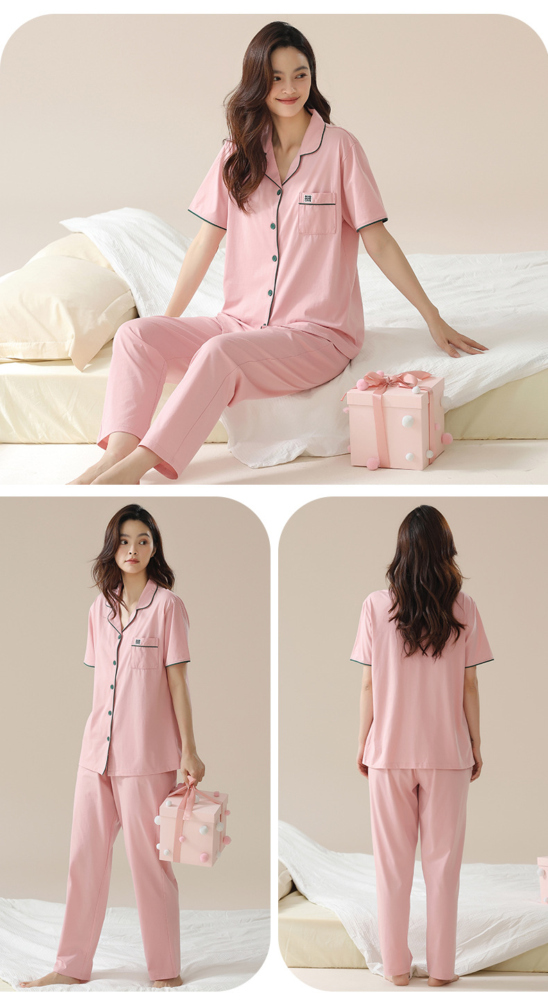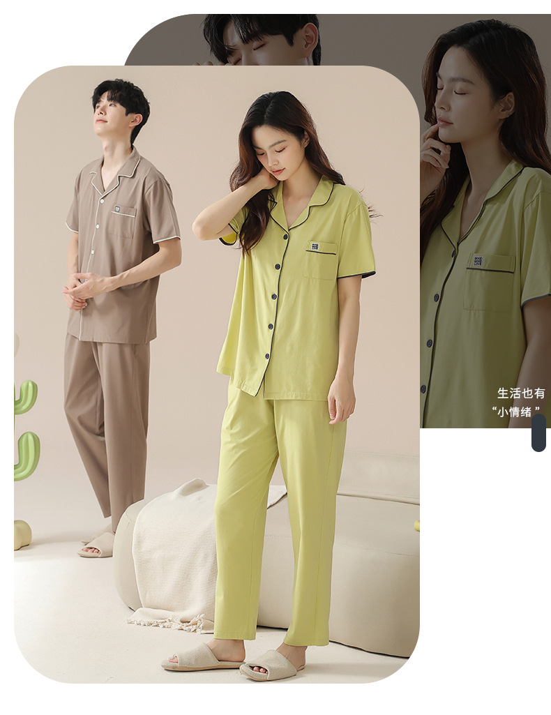 [순수한면] 커플 잠옷 여름 순면 반소매 바지 멀티 컬러 선택 여성용 홈 세트 남성 여름스토어 가기