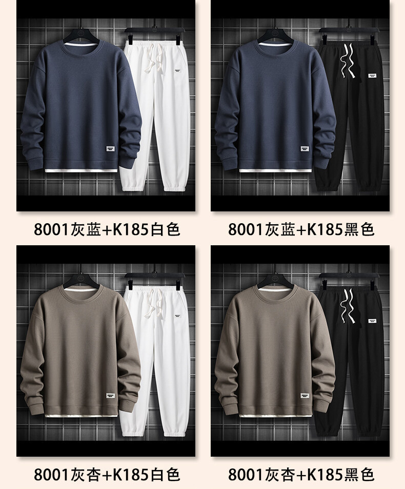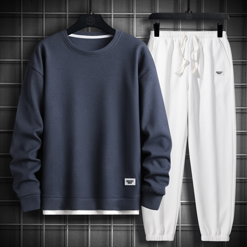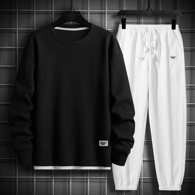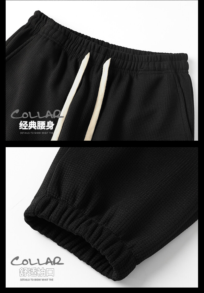 남성용 가을 패션 와플 솔리드 컬러 라운드넥 스웨트셔츠와 루즈한 9부 팬츠로 구성된 크로스보더 남성 캐주얼 스포츠 슈트