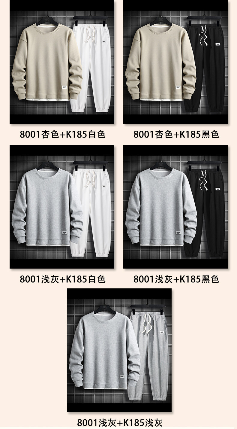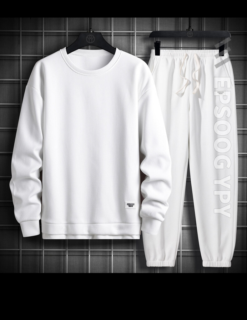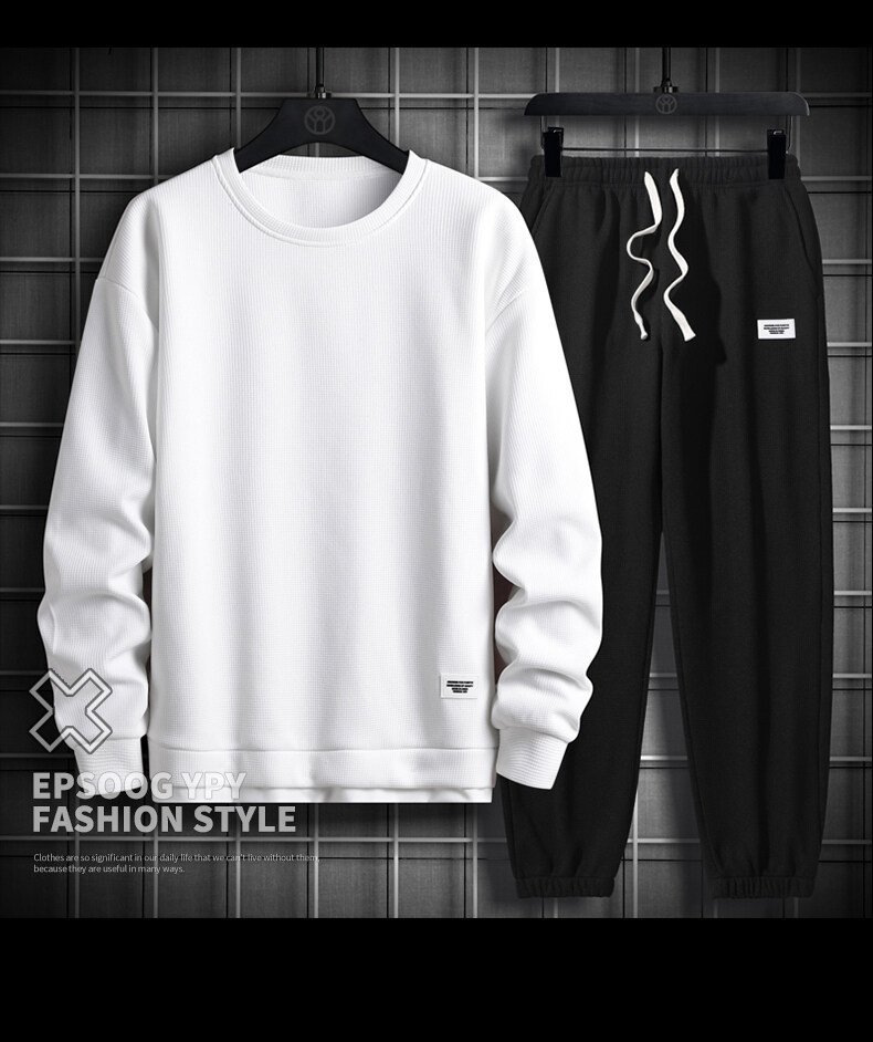 남성용 가을 패션 와플 솔리드 컬러 라운드넥 스웨트셔츠와 루즈한 9부 팬츠로 구성된 크로스보더 남성 캐주얼 스포츠 슈트스토어 가기