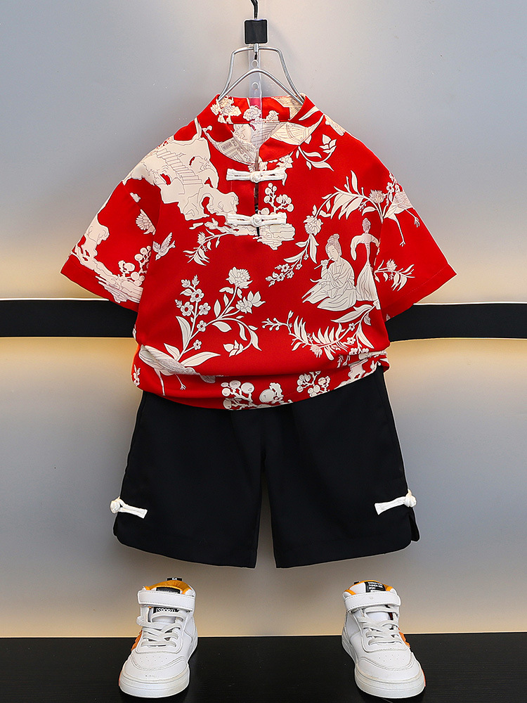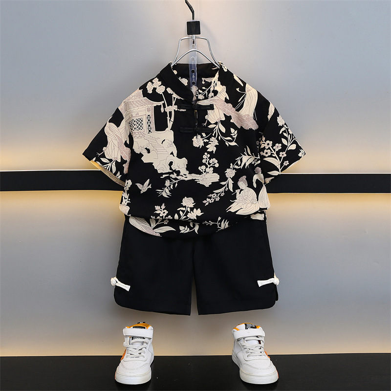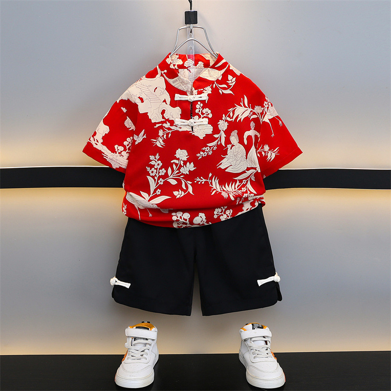 소년 반팔 세트 어린이 24 새 여름 옷 유치원 아기 중국 스타일 고대 중국 옷 당나라 세트 공연 옷스토어 가기
