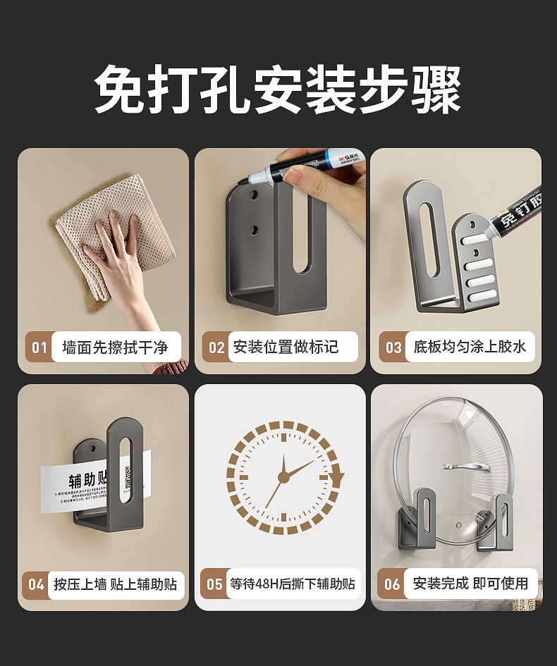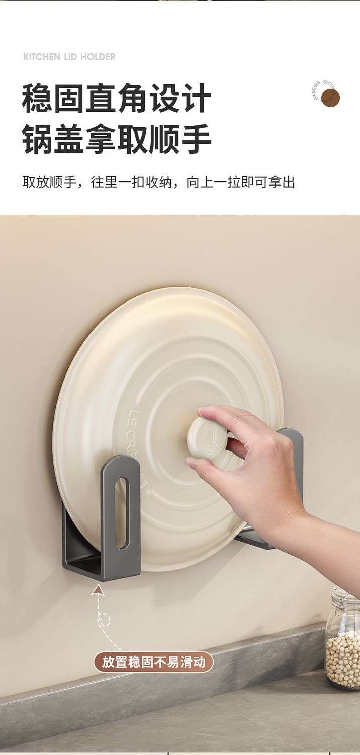 • 벽에 장착 된 냄비 커버 랙 [회색-1 쌍] 접착제