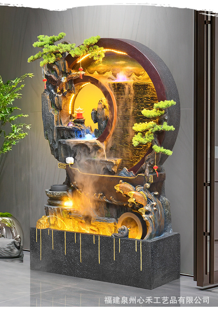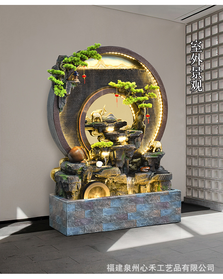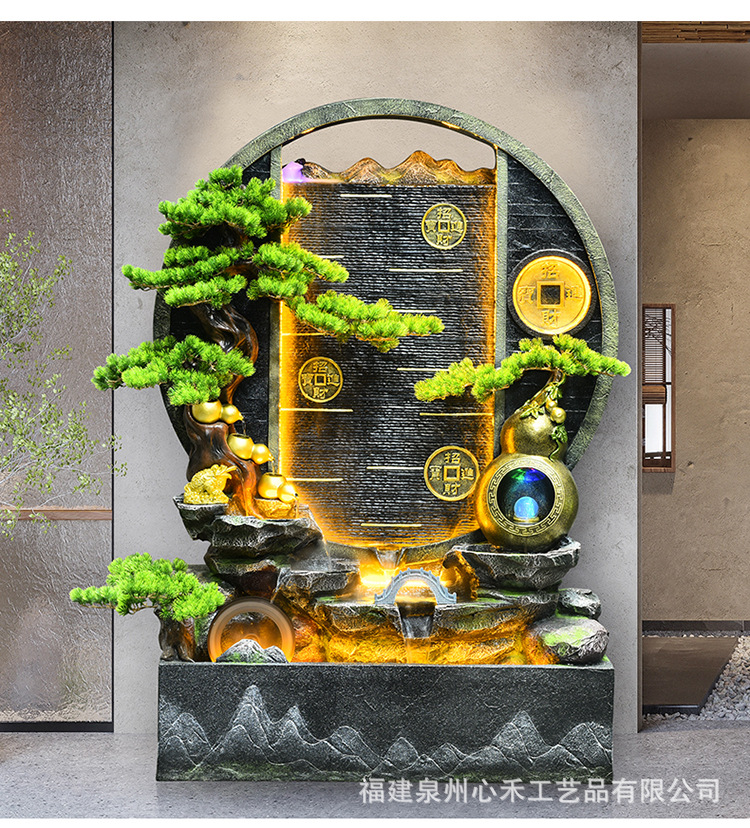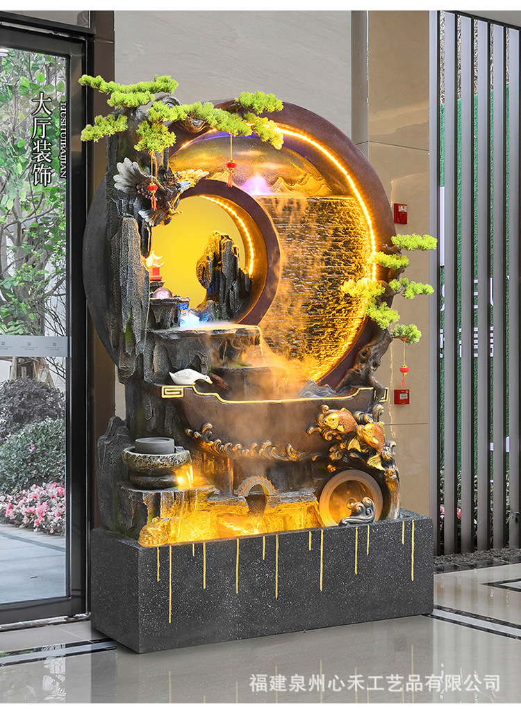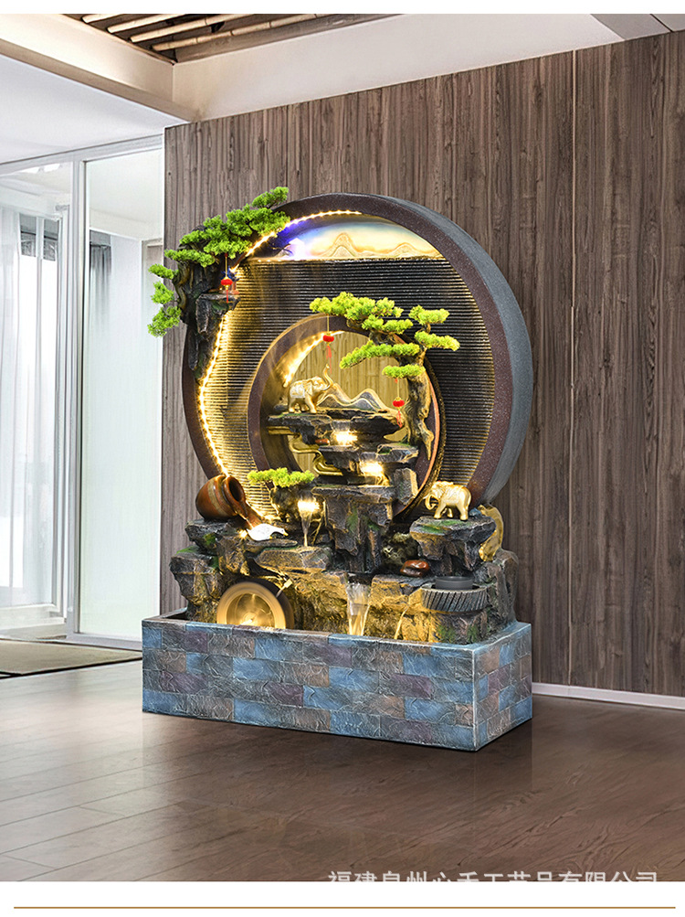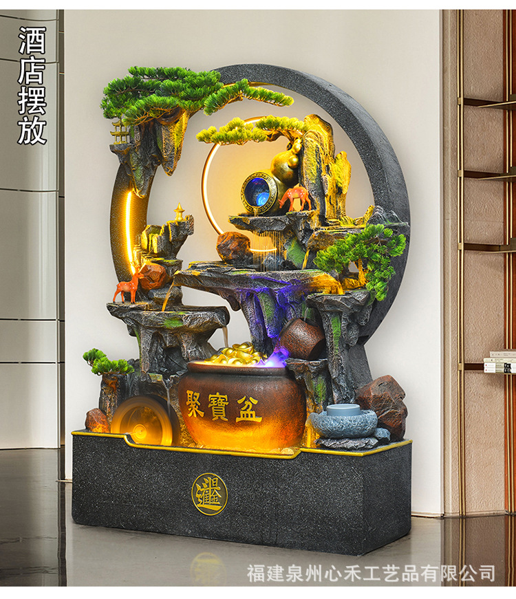 풍수 바퀴, 바위, 흐르는 물 분수, 운세 장식품, 거실, 순환 물, 바닥부터 바닥까지 열리는 선물, 사무실 장식