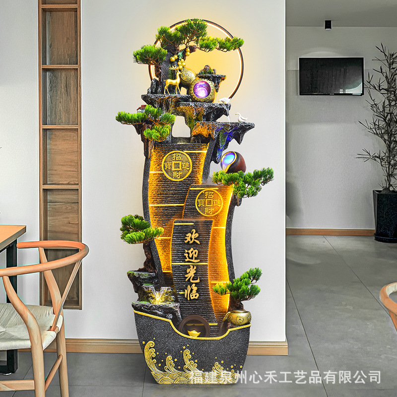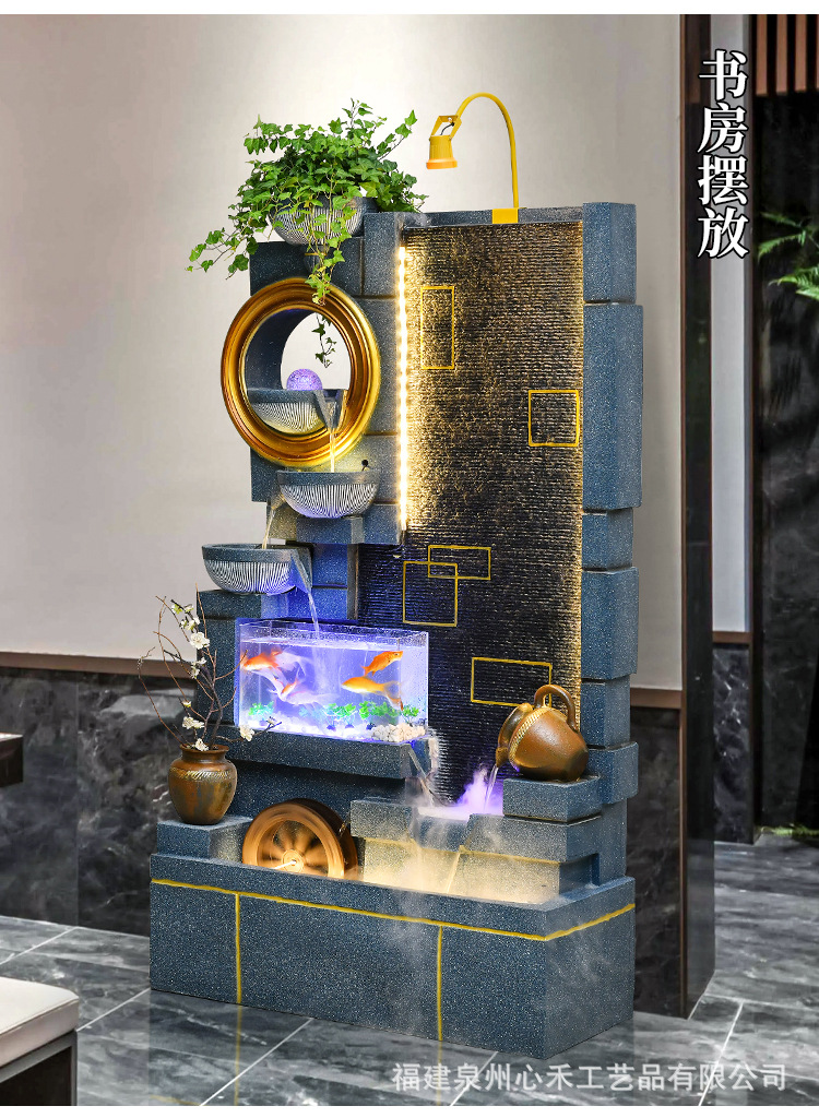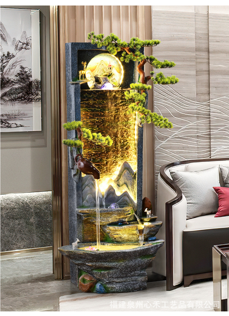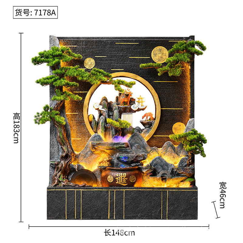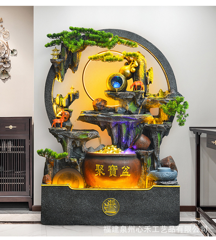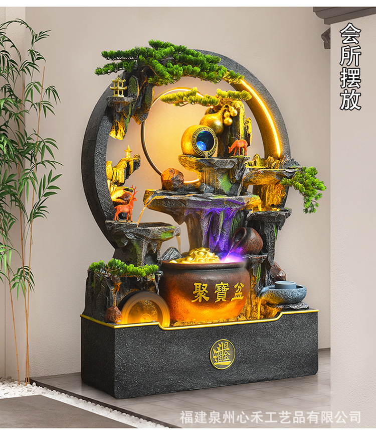 풍수 바퀴, 바위, 흐르는 물 분수, 운세 장식품, 거실, 순환 물, 바닥부터 바닥까지 열리는 선물, 사무실 장식