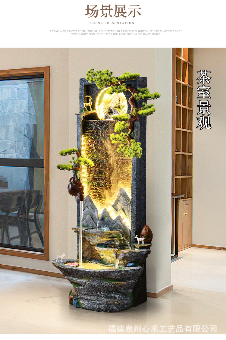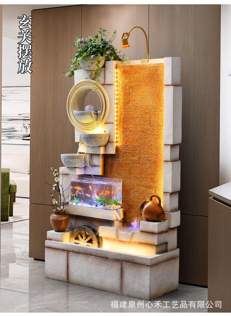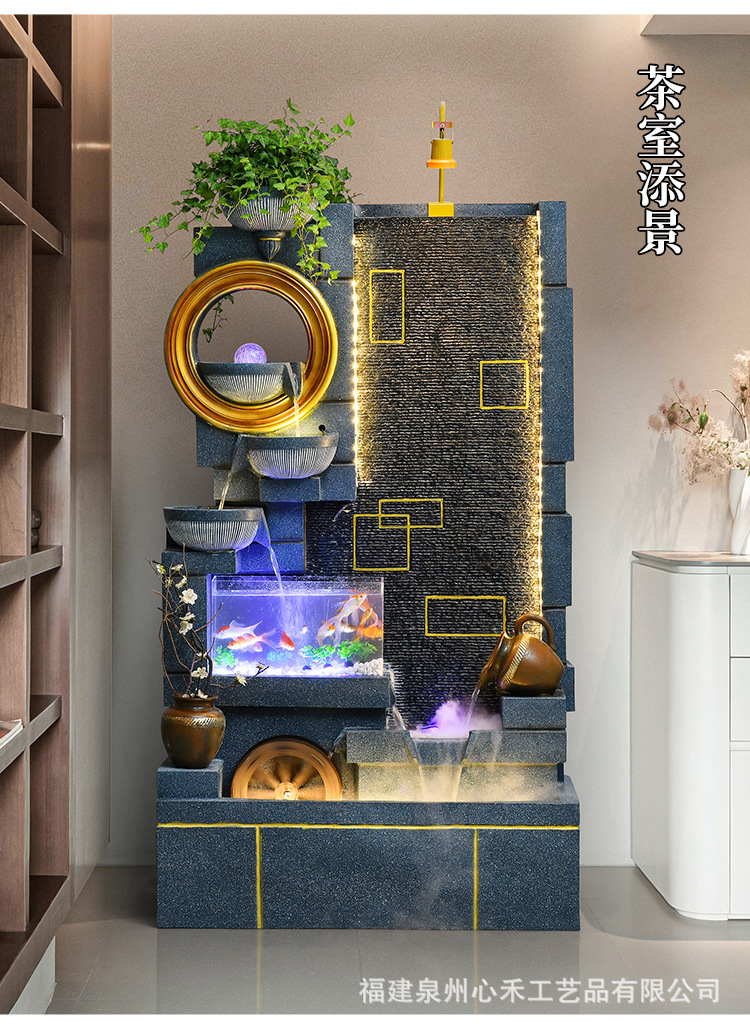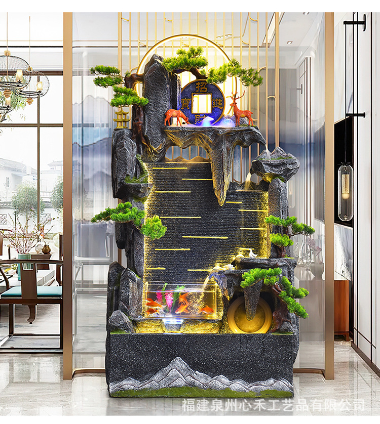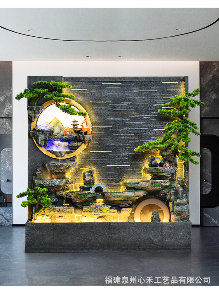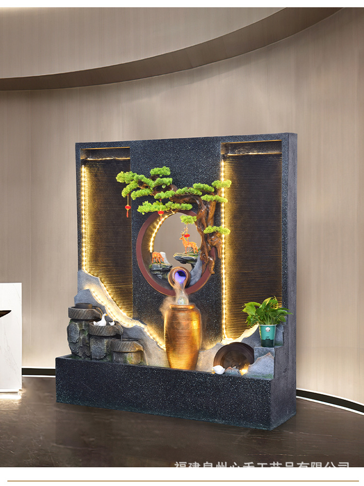 풍수 바퀴, 바위, 흐르는 물 분수, 운세 장식품, 거실, 순환 물, 바닥부터 바닥까지 열리는 선물, 사무실 장식