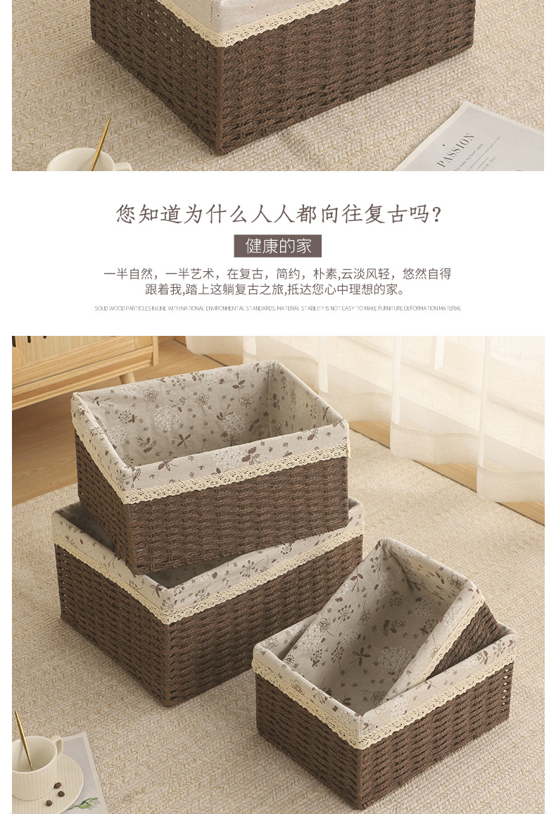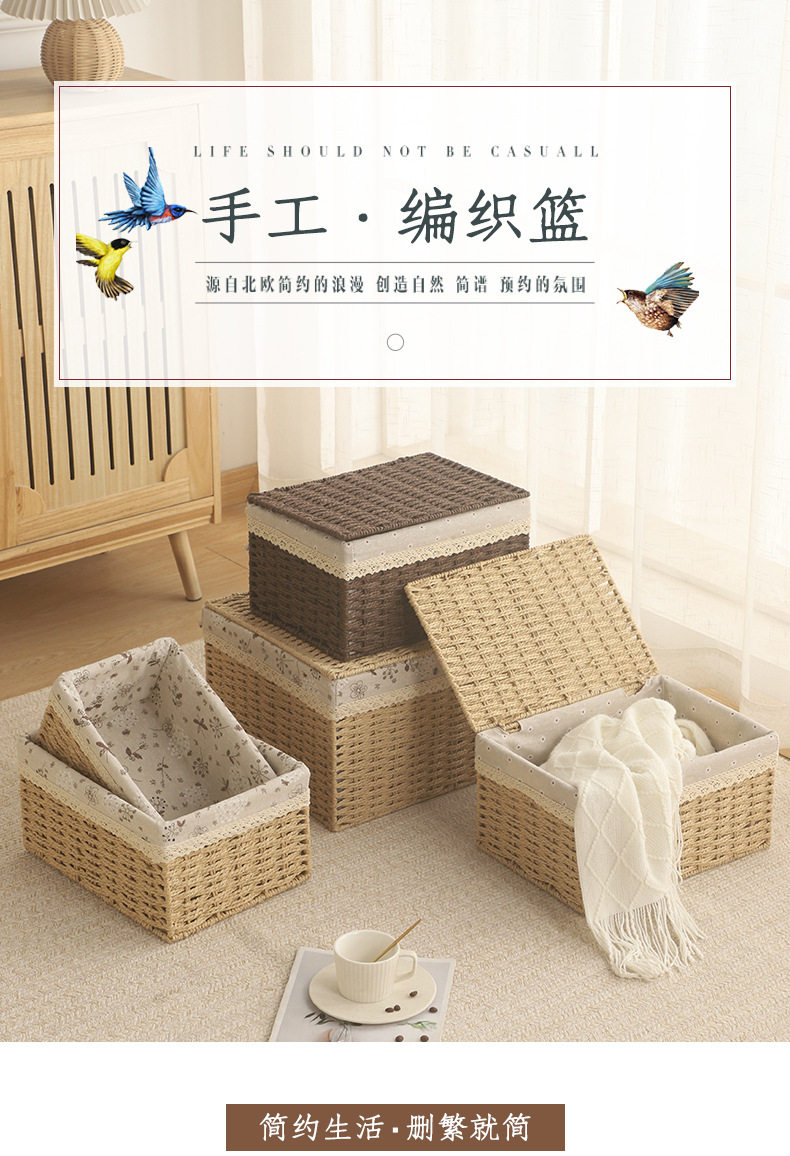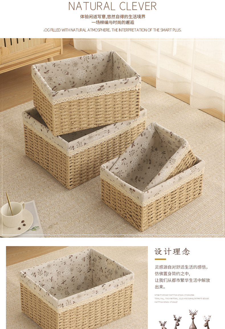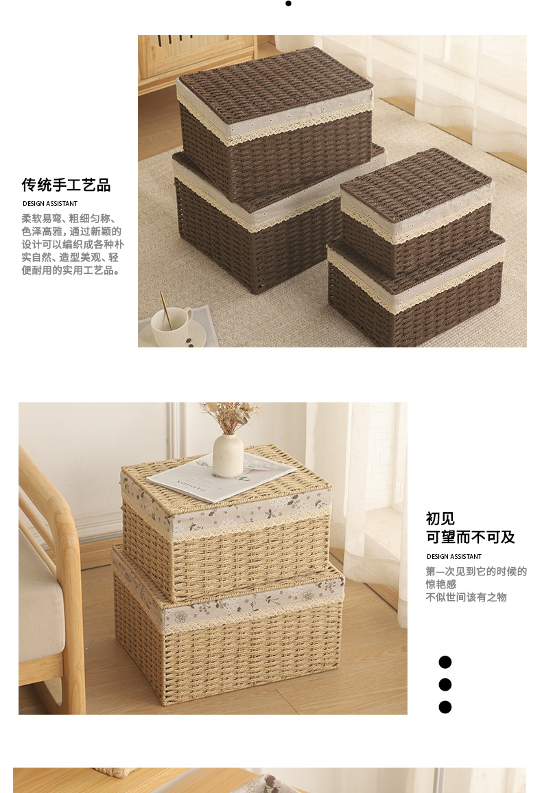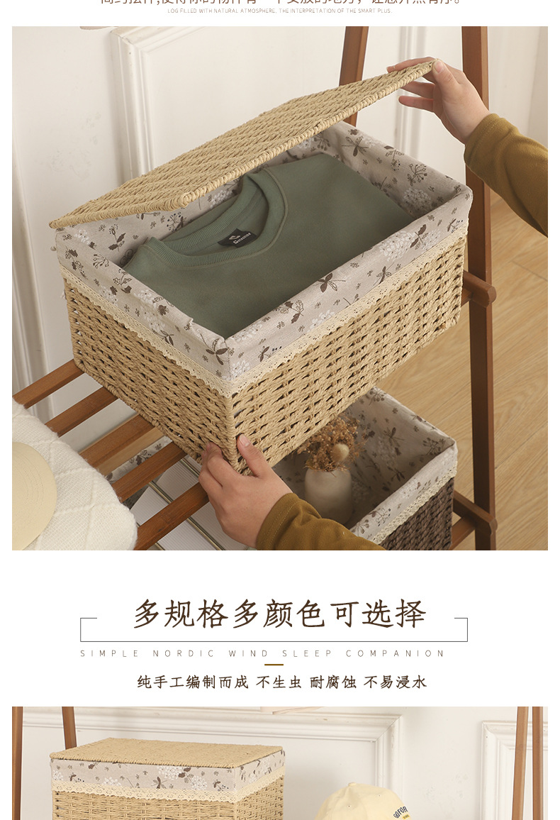 뚜껑 등나무 모양의 장난감 간식과 잡화 보관 상자가있는 밀짚 보관 바구니 보관 상자 더러운 옷 바구니 보관 바구니 바구니