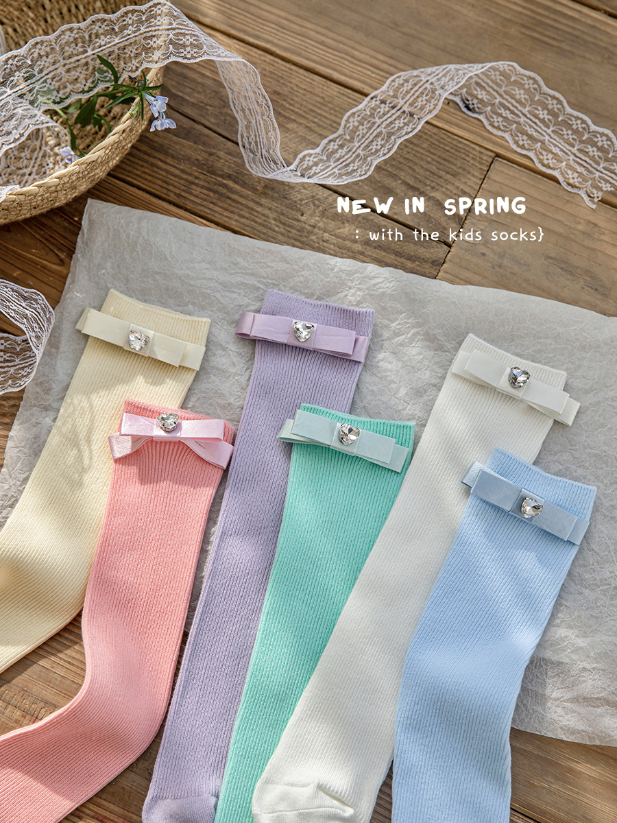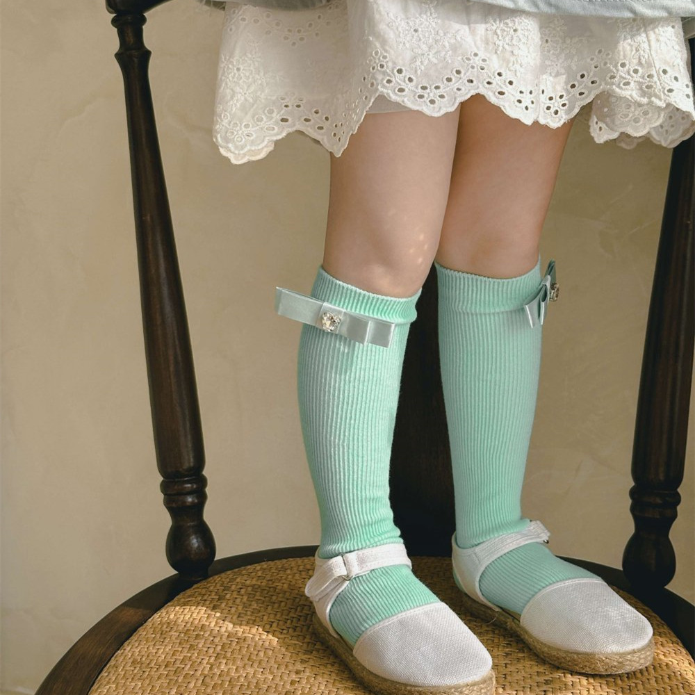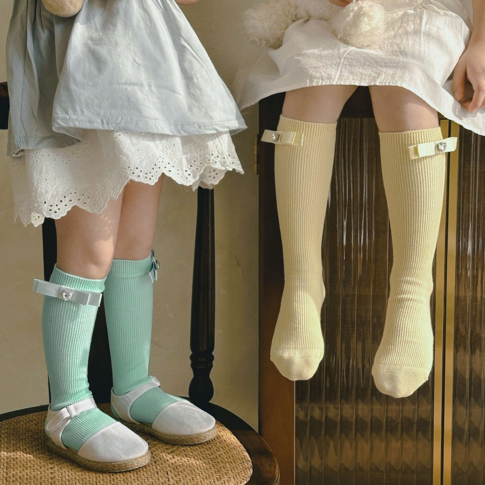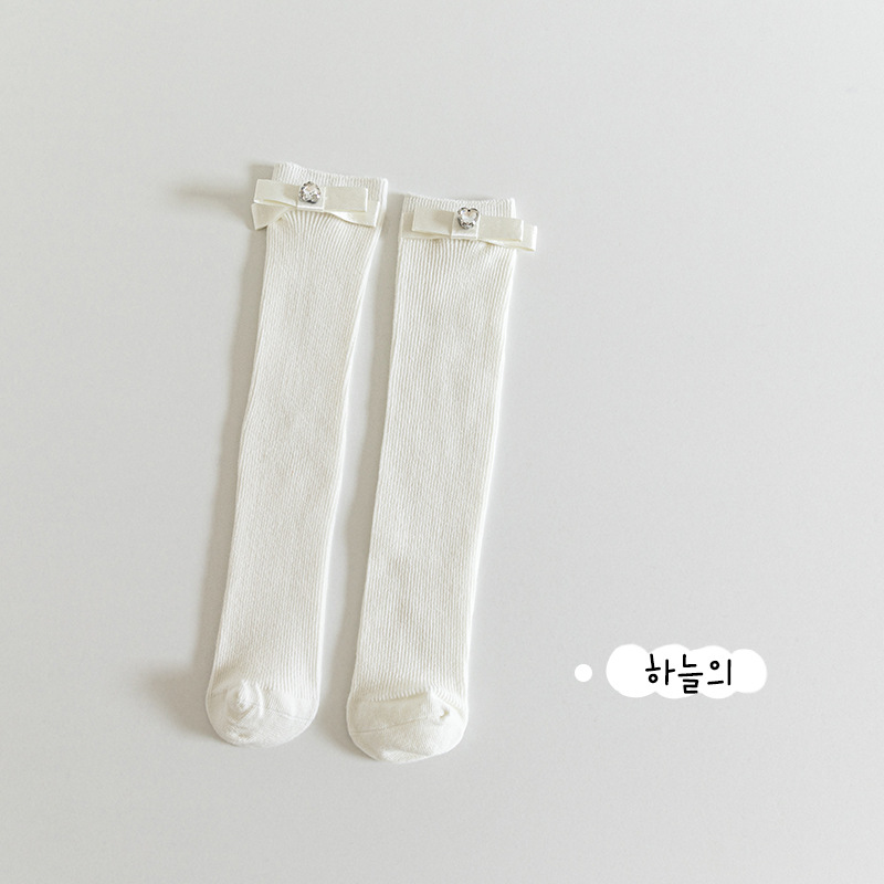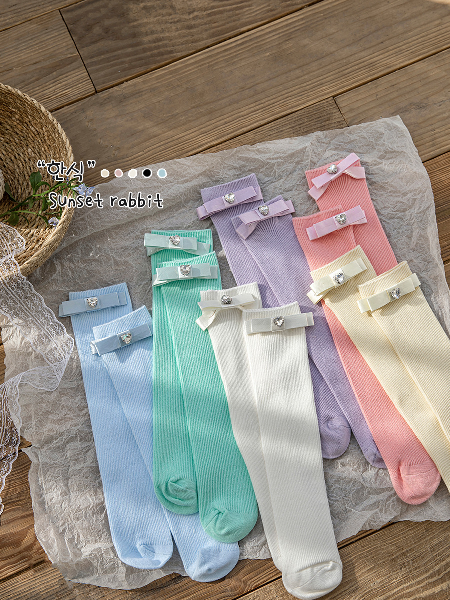 24 봄과 여름 어린이 중간 길이 양말 한국식 소녀 활 단색 스택 빗질 면 송아지 양말 뼈없는스토어 가기