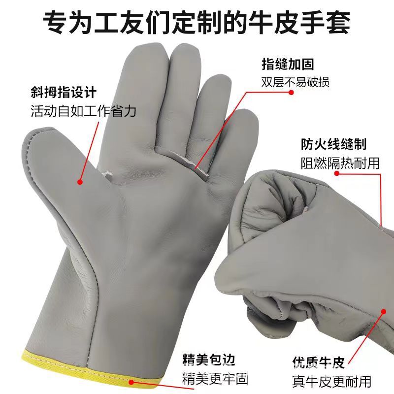용접공 장갑 헤드 레이어 소 가죽 드라이버 장갑 짧은 전체 가죽 반 용접 장갑 노동 보호 장갑 도매스토어 가기
